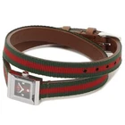 Gucci G-Frame Women's Green and Red Dial Swiss Watch - YA128528 ($920 MSRP) With Original Box! This watch is a Shelf Pull from one of the Major Department Stores. Watch has micro scratches on the watch case/band, visible under direct light. The G-frame, which combines a green, red, and green web-striped dial and a double-wrapped belt in a glossy 7-mm-thick 14 x 18-mm square case, is a frame-type sapphire glass windshield. A popular Gucci timepiece that reflects light at hand. The dial has a small silver pointer and a pyramid index. Among them, this model, which is accented with the web stripe that symbolizes Gucci, is also attractive with a nylon belt lined with brown leather. Spread the sophistication of Gucci at hand and expand the range of fashionable women's coordination. Features Brand: Gucci Dial Color: Green/Red Case Diameter (mm): 14x18 Shape: Square Case Material: Stainless Steel Band Color: Green/Red Movement: Quartz Water Resistant (meters): 30 Fast and Free Shipping You're already purchasing the item. Why pay additional for shipping, especially slow shipping? We get your order shipped out within 1-business day and delivered to your doorstep as quickly as possible. Competitive Pricing With our dynamic pricing model, our prices are always competitive. Our prices are some of the lowest that you will find on the internet. Rest assured that you're getting a good deal when purchasing with us. 30-day Money Back Guarantee We are committed to making sure that you leave this transaction satisfied. If you're unhappy with the product for any reason, you may return it back for your money-back or a replacement within 30 days. No questions asked!