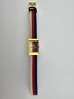 Gucci Women's G-Frame Mother of Pearl Dial Nylon Watch - ($1150 MSRP) With Original Box! This watch is a Shelf Pull from one of the Major Department Stores. Watch has micro scratches on the watch case/band, visible under direct light. Established in 1921 by Guccio Gucci, the Italian fashion brand Gucci not only offers luxury bags, clothes, footwear, accessories, perfume, and beauty products but also provides some of the world’s finest watches. Offering exquisite Italian craftsmanship fused with Swiss technology — from delicate dress watches for women to robust dive watches for men, Gucci earns the trust not only of fashion aficionados but also serious watch enthusiasts. Features Yellow gold PVD stainless steel case with a nylon strap. Fixed bezel. Mother of pearl dial with gold-tone hands. Dial Type: Analog. Quartz movement. Pull / push crown. Solid case back. Rectangle case shape. Case size: 21 mm x 34 mm. Buckle clasp. Water resistant at 50 meters / 165 feet. Functions: hour, minute. Dress watch style. Watch label: Swiss Made. Fast and Free Shipping You're already purchasing the item. Why pay additional for shipping, especially slow shipping? We get your order shipped out within 1-business day and delivered to your doorstep as quickly as possible. Competitive Pricing With our dynamic pricing model, our prices are always competitive. Our prices are some of the lowest that you will find on the internet. Rest assured that you're getting a good deal when purchasing with us. 30-day Money Back Guarantee We are committed to making sure that you leave this transaction satisfied. If you're unhappy with the product for any reason, you may return it back for your money-back or a replacement within 30 days. No questions asked!