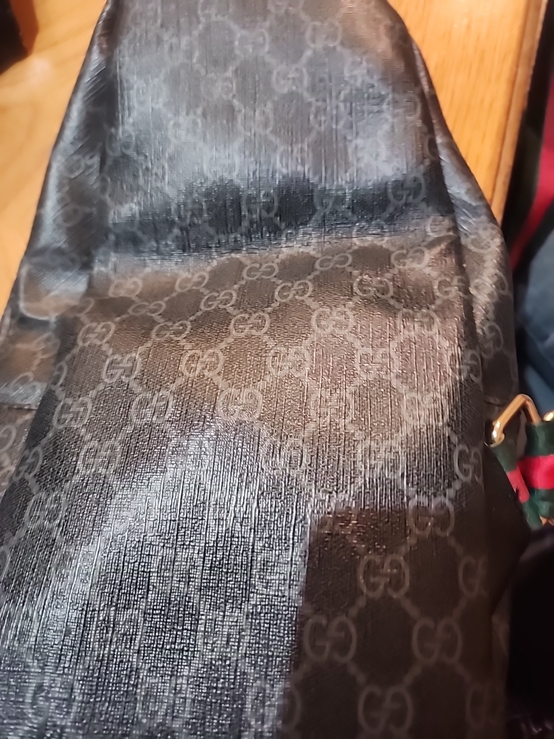 The Gucci GG Crossbody in black leather/nylon is a stylish and versatile handbag for women. With a medium size and a zip closure, this crossbody features the iconic Gucci GG pattern on the exterior, framed by gold hardware. The bag has a handle/strap color combination of green and red with a handle drop of 41 inches, making it a convenient and fashionable accessory for everyday use. The black leather and nylon exterior, along with a black lining, give this Gucci bag a sleek and sophisticated look.