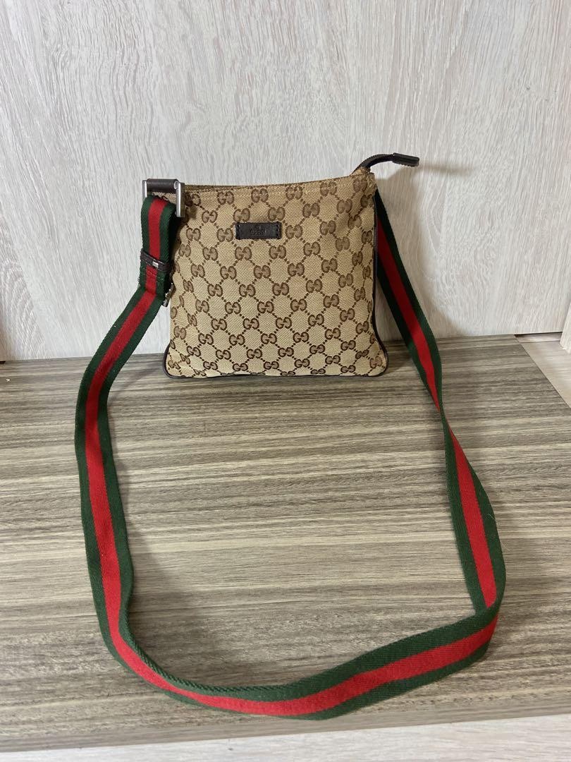 Gucci GG Canvas Shoulder Bag Beige Logo 7.9in x 8.7in x 2in Used Key Features Gucci Shoulder Bag - Style: GG canvas with Shellie line design - Exterior Color: Beige - Exterior Material: Canvas - Handle Style: Top handle and shoulder strap - Handle/Strap Material: Leather - Handle Drop: Approximately 4.9 inches - Bag Width: 8.7 inches - Bag Height: 7.9 inches - Bag Depth: 2 inches - Closure: Open with internal slip pocket - Pattern: GG monogram - Features: Durable canvas, classic design - Country/Region of Manufacture: Italy - Condition: Used with minor stains, slight discoloration, scuffs, and some internal fraying; overall good condition for continued use - Size: Approximately 8.7" W x 7.9" H x 2" D - Hardware Material: Metal with gold-tone finish - Hardware Color: Gold - Lining Color: Beige - Lining Material: Fabric Specifications Brand Gucci Country Japan Product Description Item Title Gucci Shoulder Bag Gg Pattern Canvas Sherry Line Beige Logo Payment Supports managed payments Please pay within 5 days after auction is finished. About Us We are located in Japan. It's our pleasure to make you happy by proposing our recommend item. If you have any questions or request about items, please feel free to ask us. International Buyers - Please Note: -Import duties, taxes, and charges are not included in the item price or shipping charges. These charges are the buyer's responsibility. -Please check with your country's customs office to determine what these additional costs will be prior to bidding/buying. -These charges are normally collected by the delivering freight (shipping) company or when you pick the item up - do not confuse them for additional shipping charges. -We do not mark merchandise values below value or mark items as - gifts - The US and International government regulations prohibit such behavior. Thank you for your understanding.