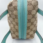 Gucci GG Canvas Blue Leather Mini Handbag, Compact, Used Key Features - Brand: GUCCI - Product Type: Mini Boston Bag - Model: GG Canvas with Light Blue Leather accents - Exterior Material: Canvas and Leather - Exterior Color: Beige and Light Blue - Size: approximately 7.1 inches (H) x 7.5 inches (W) x 4.5 inches (D) - Bag Height: 7.1 inches - Bag Width: 7.5 inches - Bag Depth: 4.5 inches - Handle/Strap Material: Leather - Handle Drop: Not specified - Closure: Not specified - Pattern: GG Monogram Canvas - Features: Compact, spacious for its size, versatile for hand or sub-bag use - Condition: Used with minor signs of wear, some dirt and scratches, but overall clean for vintage - Occasion: Casual outings, everyday use - Country/Region of Manufacture: Not specified - Vintage: Yes - Hardware Material: Specifications Brand Gucci Country Japan Product Description Item Title Gucci Canvas Blue Leather Mini Handbag Payment Supports managed payments Please pay within 5 days after auction is finished. About Us We are located in Japan. It's our pleasure to make you happy by proposing our recommend item. If you have any questions or request about items, please feel free to ask us. International Buyers - Please Note: -Import duties, taxes, and charges are not included in the item price or shipping charges. These charges are the buyer's responsibility. -Please check with your country's customs office to determine what these additional costs will be prior to bidding/buying. -These charges are normally collected by the delivering freight (shipping) company or when you pick the item up - do not confuse them for additional shipping charges. -We do not mark merchandise values below value or mark items as - gifts - The US and International government regulations prohibit such behavior. Thank you for your understanding.