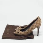 One of the best selling items, these beige pumps from New Hollywood collection by Gucci have all the signature traits of the brand over it. Crafted from monogrammed canvas, these peep toe pumps flaunt a contrast of leather trims and a horsebit motif on the front. Pair with your off duty looks.Certified by The Luxury Closet - This item has gone through a detailed authentication process overseen by our experts. We offer a lifetime guarantee of authenticity on all our items. Import duties, taxes and charges are not included in the item price. These charges are the buyers responsibility. Please check with your country’s customs office to determine what these additional cost will be prior to buying. Our eBay Store About Us Contact Us Add to Favorite Sellers Gucci Beige/Brown GG Canvas Hollywood Horsebit Peep Toe Pumps Size 36.5 $253 One of the best selling items, these beige pumps from New Hollywood collection by Gucci have all the signature traits of the brand over it. Crafted from monogrammed canvas, these peep toe pumps flaunt a contrast of leather trims and a horsebit motif on the front. Pair with your off duty looks. Product Details Brand Color Beige Dimensions Material Canvas Size 36.5 Outsole Width 8 cm Outsole Length 23 cm Heel Height 9 cm Includes Original Dustbag Certified by The Luxury Closet This item has gone through a detailed authentication process overseen by our experts. We offer a lifetime guarantee of authenticity on all our items. How We Check The in-house team of experts at The Luxury Closet is highly trained to verify the authenticity and the condition of the luxury products. They ensure that only 100% authentic items are put on sale.The evaluation process is unique with its own mix of assessment criteria and differs according to the category. Each item is evaluated based on the following combination of hallmarks, hardware, stitching, symmetry, material, craftsmanship, stamping, codes, hologram stickers, and packaging. Our authenticators also check if the items have been modified or amended (e.g., aftermarket diamonds, replaced batteries, repaired bags, etc.) International Buyers Import duties, taxes and charges are not included in the item price. These charges are the buyers responsibility. Please check with your country’s customs office to determine what these additional cost will be prior to buying.