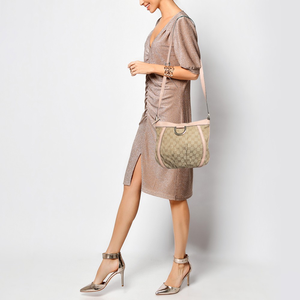 This classic Gucci Abbey hobo will give any outfit an elegant finish. It is crafted from GG canvas with leather trim that is accented with gold toned D rings and studs. The fabric lined interior will keep your belongings safe.Certified by The Luxury Closet - This item has gone through a detailed authentication process overseen by our experts. We offer a lifetime guarantee of authenticity on all our items. Import duties, taxes and charges are not included in the item price. These charges are the buyers responsibility. Please check with your country’s customs office to determine what these additional cost will be prior to buying. Our eBay Store About Us Contact Us Add to Favorite Sellers Gucci Light Pink/Beige GG Canvas and Leather Abbey D-Ring Crossbody Bag $273.9 This classic Gucci Abbey hobo will give any outfit an elegant finish. It is crafted from GG canvas with leather trim that is accented with gold toned D rings and studs. The fabric lined interior will keep your belongings safe. Product Details Brand Color Pink Dimensions Height: 26 cm, Width: 2 cm, Length: 29 cm (top) Material Canvas, Leather Size Outsole Width Outsole Length Heel Height Includes The Luxury Closet Packaging Certified by The Luxury Closet This item has gone through a detailed authentication process overseen by our experts. We offer a lifetime guarantee of authenticity on all our items. How We Check The in-house team of experts at The Luxury Closet is highly trained to verify the authenticity and the condition of the luxury products. They ensure that only 100% authentic items are put on sale.The evaluation process is unique with its own mix of assessment criteria and differs according to the category. Each item is evaluated based on the following combination of hallmarks, hardware, stitching, symmetry, material, craftsmanship, stamping, codes, hologram stickers, and packaging. Our authenticators also check if the items have been modified or amended (e.g., aftermarket diamonds, replaced batteries, repaired bags, etc.) International Buyers Import duties, taxes and charges are not included in the item price. These charges are the buyers responsibility. Please check with your country’s customs office to determine what these additional cost will be prior to buying.