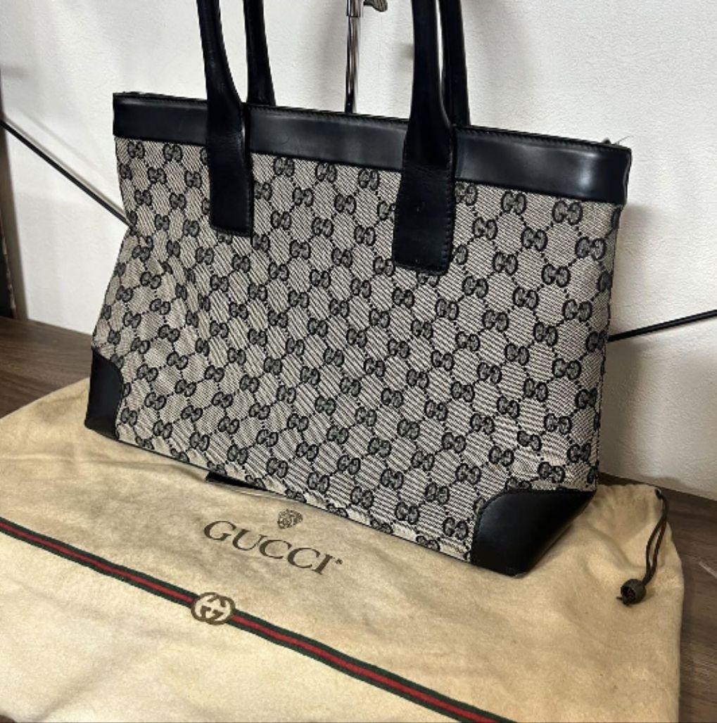 Authentic Gucci GG New Brit Canvas Leather Tote Bag from Japan