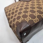 Gucci GG Canvas and Leather Tote Bag in Brown Red Preowned