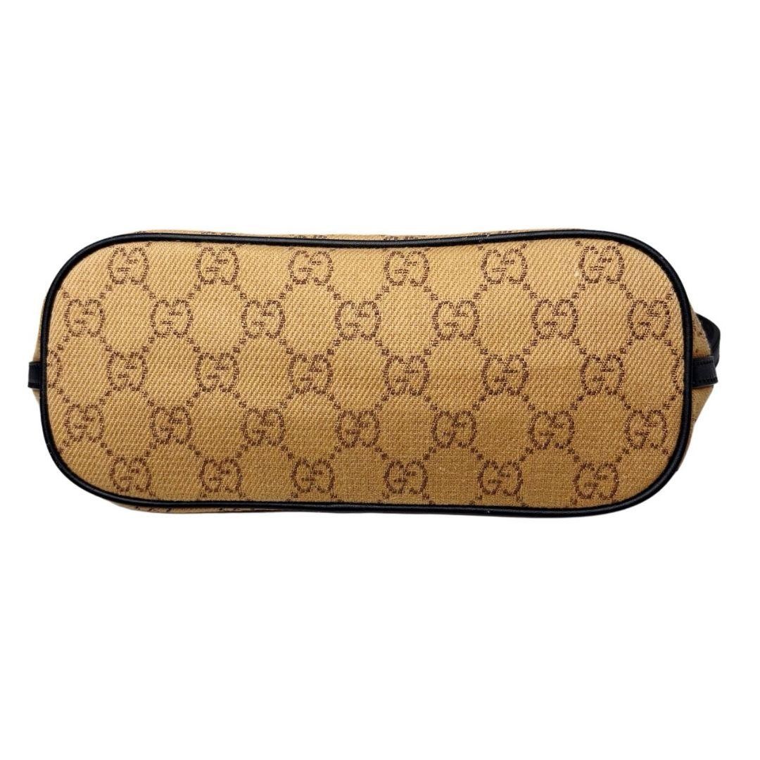 Gucci Sherry Canvas Tote Bag Leather Gold Beige 15.6in Used
