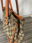 Gucci GG Canvas Leather Handbag Orange Studs Tote 9.1in x 11.8in x 5.1in Used Key Features Gucci Handbag with GG Canvas Pattern - Brand: Gucci - Style: Tote Bag - Exterior Material: Canvas and Leather - Exterior Color: Beige and Orange - Pattern: GG Monogram - Size: Bag Height approximately 9.1 inches, Width approximately 11.8 inches, Depth approximately 5.1 inches - Handle Style: Top handles with a handle height of about 2.4 inches - Features: Studded accents, durable canvas with leather trim - Closure: Open top - Country/Region of Manufacture: Italy - Condition: Used, with minor stains, discoloration, scuffs, and slight wear on interior serial tag; overall good condition and long-lasting use - Accessories: None included - Notes: Please review photos for detailed condition. Slight variations in color may occur due to device display. This vintage item has some signs of use but remains in good condition for continued use. Specifications Brand Gucci Country Japan Product Description Item Title Gucci Handbag Gg Pattern Canvas Leather Orange Studs Payment Supports managed payments Please pay within 5 days after auction is finished. About Us We are located in Japan. It's our pleasure to make you happy by proposing our recommend item. If you have any questions or request about items, please feel free to ask us. International Buyers - Please Note: -Import duties, taxes, and charges are not included in the item price or shipping charges. These charges are the buyer's responsibility. -Please check with your country's customs office to determine what these additional costs will be prior to bidding/buying. -These charges are normally collected by the delivering freight (shipping) company or when you pick the item up - do not confuse them for additional shipping charges. -We do not mark merchandise values below value or mark items as - gifts - The US and International government regulations prohibit such behavior. Thank you for your understanding.