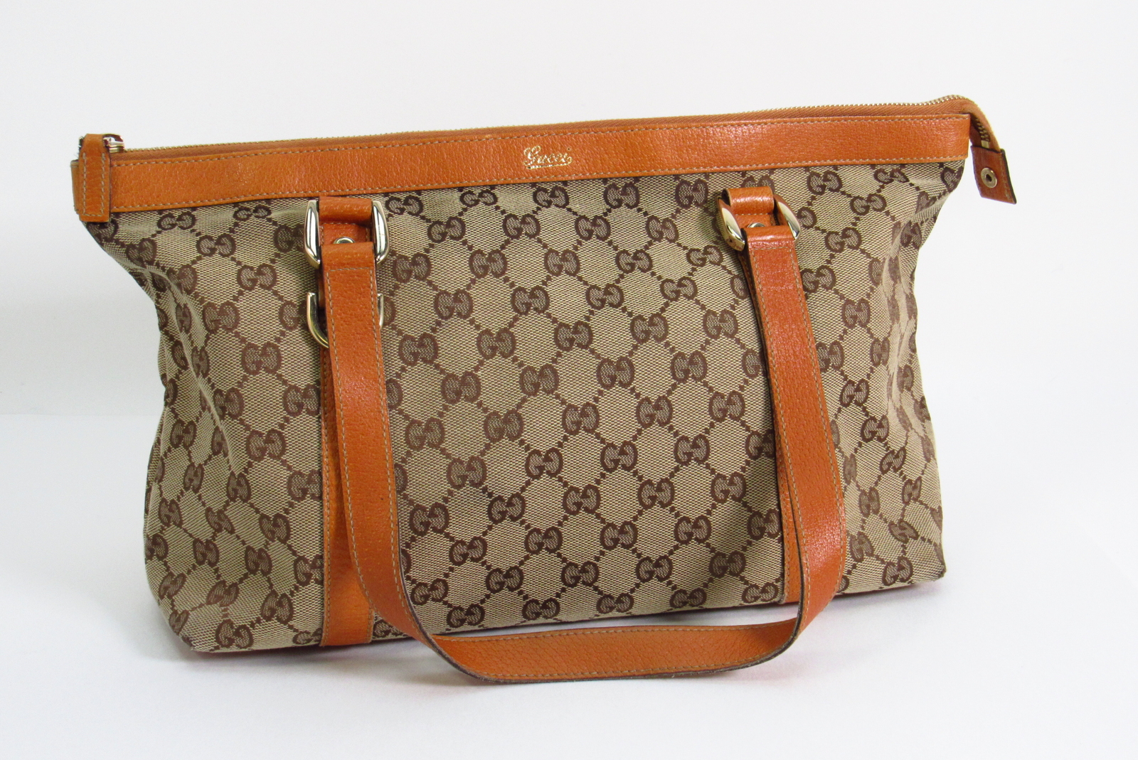 PAWN AMERICA KEY TECHNICAL SPECIFICATIONS : Brand: Gucci Exterior Material: N/A Style: Tote Bag Exterior Color: Orange/Beige Department: Women Features : Dimensions (measured as presented in photos): 14-1/2'' by 8'' by 5'' Colors: Beige, Orange, Gold-Toned Hardware Entrupy Look-Up Code: C6QH9TK What's Included : Gucci D-Gold GG Canvas Orange One-Size Tote Bag - Entrupy Authenticated What's Not Included : Packaging Dust Bag Condition : Previously owned. Scratches and general dirtiness can be seen throughout the Gucci D-Gold Canvas Orange One-Size tote bag from normal use and handling. See photos for details; photos provided show the actual item(s) for purchase. Reference: 24915033651 Note: Overnight Shipping order cut off time is 1PM CST. HOME | LOCATIONS | SERVICES | PRODUCTS | CAREERS | CONTACT US