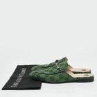 These Gucci Princetown mules signify luxury and practicality. An ultimate favourite of style enthusiasts, its silhouette gets a luxe update with the Horsebit motif on the uppers, and its charm is enhanced with silver tone accents. It comes made from GG canvas and features a slip on fitting.Certified by The Luxury Closet - This item has gone through a detailed authentication process overseen by our experts. We offer a lifetime guarantee of authenticity on all our items. Import duties, taxes and charges are not included in the item price. These charges are the buyers responsibility. Please check with your country’s customs office to determine what these additional cost will be prior to buying. Our eBay Store About Us Contact Us Add to Favorite Sellers Gucci Green/Navy Blue GG Canvas Princetown Horsebit Flat Mules Size 38 $453.2 These Gucci Princetown mules signify luxury and practicality. An ultimate favourite of style enthusiasts, its silhouette gets a luxe update with the Horsebit motif on the uppers, and its charm is enhanced with silver tone accents. It comes made from GG canvas and features a slip on fitting. Product Details Brand Color Green Dimensions Material Canvas Size 38 Outsole Width Outsole Length Heel Height Includes Certified by The Luxury Closet This item has gone through a detailed authentication process overseen by our experts. We offer a lifetime guarantee of authenticity on all our items. How We Check The in-house team of experts at The Luxury Closet is highly trained to verify the authenticity and the condition of the luxury products. They ensure that only 100% authentic items are put on sale.The evaluation process is unique with its own mix of assessment criteria and differs according to the category. Each item is evaluated based on the following combination of hallmarks, hardware, stitching, symmetry, material, craftsmanship, stamping, codes, hologram stickers, and packaging. Our authenticators also check if the items have been modified or amended (e.g., aftermarket diamonds, replaced batteries, repaired bags, etc.) International Buyers Import duties, taxes and charges are not included in the item price. These charges are the buyers responsibility. Please check with your country’s customs office to determine what these additional cost will be prior to buying.