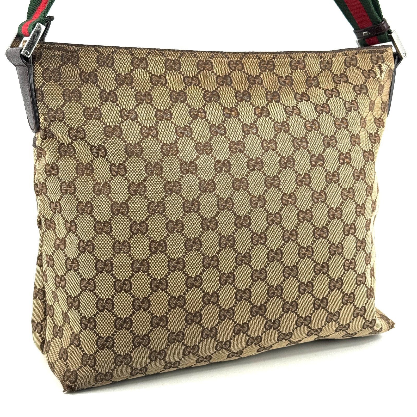GUCCI GG Canvas Shoulder Bag Brown | Authentic Used Designer Bag from Japan GUCCI GG Canvas Crossbody Shoulder Bag Brown Item Description Title Gucci GG Canvas Sherry line Shoulder Messenger Bag Beige Brown Leather Authentic Brand GUCCI Made in Italy Serial Number / Date Code 189751 497717 Material Canvas / Leather Color Brown Style Shoulder Bag Size(cm) W35.0 x H32.0 x D11.0 cm (Approx) Size(inch) W13.77 x H12.6 x D4.33 inch (Approx) Strap Drop 32~65cm(12~25.6in) Handle Drop - Accessory There is NO item box and dust bag. Only the accessory in the photo will be sent. Rank AB Outside Condition There is a tear next to the front logo. Corners There is damage to the four corners of the bottom. Leather A few rubbed Handle/Strap A few rubbed Metal Fitting - Others - Inside good condition Pocket good condition Odor No offensive odor to us Authentic Guarantee Our products are guaranteed to be 100% Authentic items. All items are inspected by professional brand item experts of our company. Shipping We send a product by Fedex or Japan Post. We usually ship within "3" business days of receiving cleared payment. We ship from Japan. Import duties, taxes, and charges are not included in the item price or shipping cost. These charges are the buyer?s responsibility. International Buyers - Please Note: Import duties, taxes, and charges are not included in the item price or shipping cost. These charges are the buyer's responsibility. Please check with your country's customs office to determine what these additional costs will be prior to bidding or buying. Thank you for your understanding. Condition Rating Rank Description S New, Perfect Condition or only without a tag SA Unised may have insignificant scratches or slight discoloration due to storage or display. AA Unused or barely used, may have some insignificant scratches or stains. AB Used item has some insignificant scratches and other signs of usage. B Used item, has some scratches stains and obvious signs of usage BC Item has scratches discoloration and other noticeable signs of usage. D Junk item.