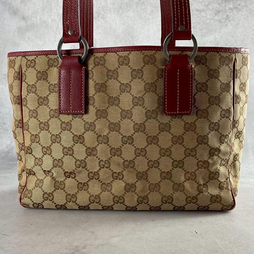 Gucci GG Canvas Tote Bag Leather Red 2Way A4 Casual Used Key Features - Brand: Gucci - Product Type: Tote Bag / Handbag / Shoulder Bag - Model: 113019 - Material: Leather and Canvas - Color: Brown, Beige, Red - Dimensions: approximately 13.8 inches (35cm) wide x 8.3 inches (21cm) high x 3.9 inches (10cm) deep; Handle drop: 7.5 inches (19cm) - Features: Classic GG canvas pattern, 2-way design for hand or shoulder carry, suitable for business, casual, commuting, or school, fits A4 size documents - Condition: Slight signs of use, minor scuffs or stains, no major damage or stains, still in good condition for continued use - Made in Italy - No accessories are included unless noted in the title or product description. If you have any questions, please ask before purchasing. Specifications Brand Gucci Country Japan Exterior Material Leather Style Tote Bag Exterior Color Red Occasion Casual Material Canvas Color Red Product Description Item Title Rare Color/Gucci Gg Canvas Tote Handbag Leather Red Payment Supports managed payments Please pay within 5 days after auction is finished. About Us We are located in Japan. It's our pleasure to make you happy by proposing our recommend item. If you have any questions or request about items, please feel free to ask us. International Buyers - Please Note: -Import duties, taxes, and charges are not included in the item price or shipping charges. These charges are the buyer's responsibility. -Please check with your country's customs office to determine what these additional costs will be prior to bidding/buying. -These charges are normally collected by the delivering freight (shipping) company or when you pick the item up - do not confuse them for additional shipping charges. -We do not mark merchandise values below value or mark items as - gifts - The US and International government regulations prohibit such behavior. Thank you for your understanding.