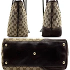 $ 129.6Gucci GG Canvas Leather Tote Bag Sherry Line Black Auth From Japan