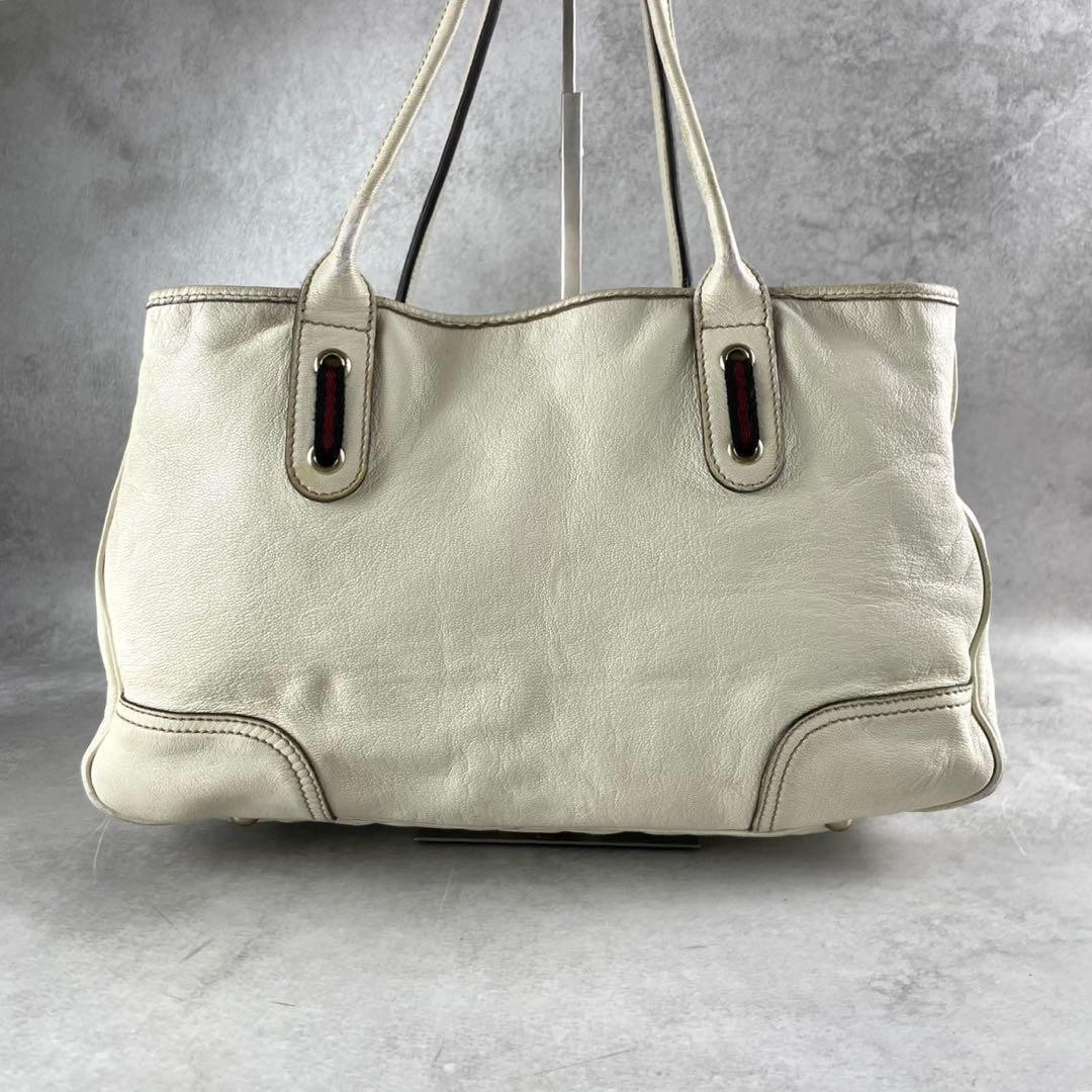 Gucci GG Leather Tote Bag Ivory Sherry Line All-Over Used Key Features - Brand: Gucci - Product Type: Tote Bag / Handbag / Shoulder Bag - Model: 163805 - Exterior Material: Leather (genuine leather) - Exterior Color: Ivory / White / Off-white - Interior Color: Bordeaux - Pattern: GG monogram pattern - Accents: Red web ribbon, gold hardware - Features: Versatile for business, casual, commuting, school, formal occasions - Closure: Open top - Handle Style: Double handles - Handle Drop: approximately 7.9 inches - Bag Width: 14.2 inches - Bag Height: 7.9 inches - Bag Depth: 3.9 inches - Country/Region of Manufacture: Italy - Condition: Used with minor signs of use, still suitable for long-term use - Dimensions (approximate): Width 14.2 in, Height 7.9 in, Depth 3.9 in, Handle Drop 7. Specifications Brand Gucci Country Japan Product Description Item Title Rare Gucci Leather Tote Gg Pattern Ribbon Ivory Sherry Line All-Over Payment Supports managed payments Please pay within 5 days after auction is finished. About Us We are located in Japan. It's our pleasure to make you happy by proposing our recommend item. If you have any questions or request about items, please feel free to ask us. International Buyers - Please Note: -Import duties, taxes, and charges are not included in the item price or shipping charges. These charges are the buyer's responsibility. -Please check with your country's customs office to determine what these additional costs will be prior to bidding/buying. -These charges are normally collected by the delivering freight (shipping) company or when you pick the item up - do not confuse them for additional shipping charges. -We do not mark merchandise values below value or mark items as - gifts - The US and International government regulations prohibit such behavior. Thank you for your understanding.