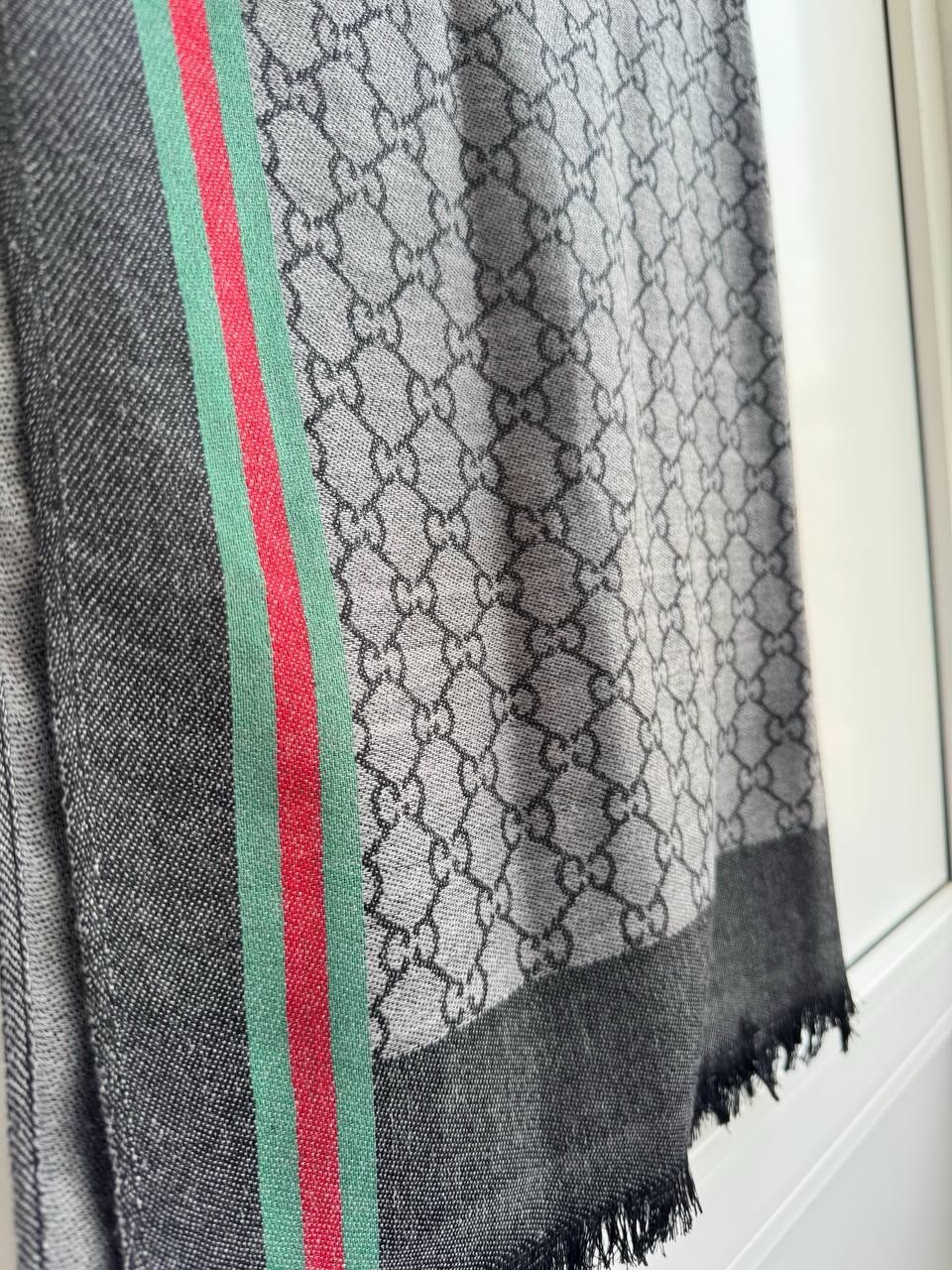 HomeGucci GG Logo Gray Scarf Shawl Wrap Made in Italy
