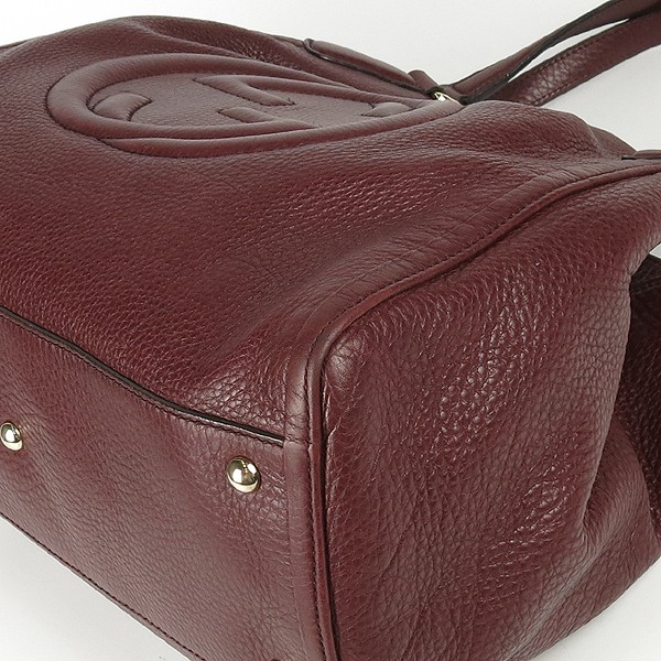 Size: 34 cm width/ 26 cm/ width 17 cm/ handle height 16 cm/ handle height : black accessories: extra leather/ booklet/ dust Gucci (Gucci) 282309 purple leather GG logo tassel decoration Soho shoulder bag [Gangnam Main Store]. The store price is 2; 705; 000 won. The material is leather. There is a zipper pocket/small multi-use storage pocket on the inside. **Due to the nature of second-hand luxury goods, there may be stains not visible in the image. **