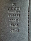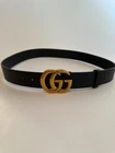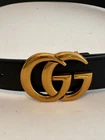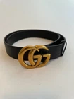 The Gucci GG Marmont Black Leather Belt is a stylish and luxurious accessory for men. Made in Italy with high-quality leather, this belt features a brass gold buckle accent and a solid black color. With a width of 1.5 inches and a size of 38, this designer belt is perfect for adding a touch of sophistication to any outfit. Displaying the iconic Gucci brand, this belt is a versatile and on-trend piece that is sure to elevate any look. Gucci Italy Size 95-38 Item # 114984 AA61N Brass Gold GG Buckle 2.5" x 2" Belt Width 1.5" Smooth Black Leather