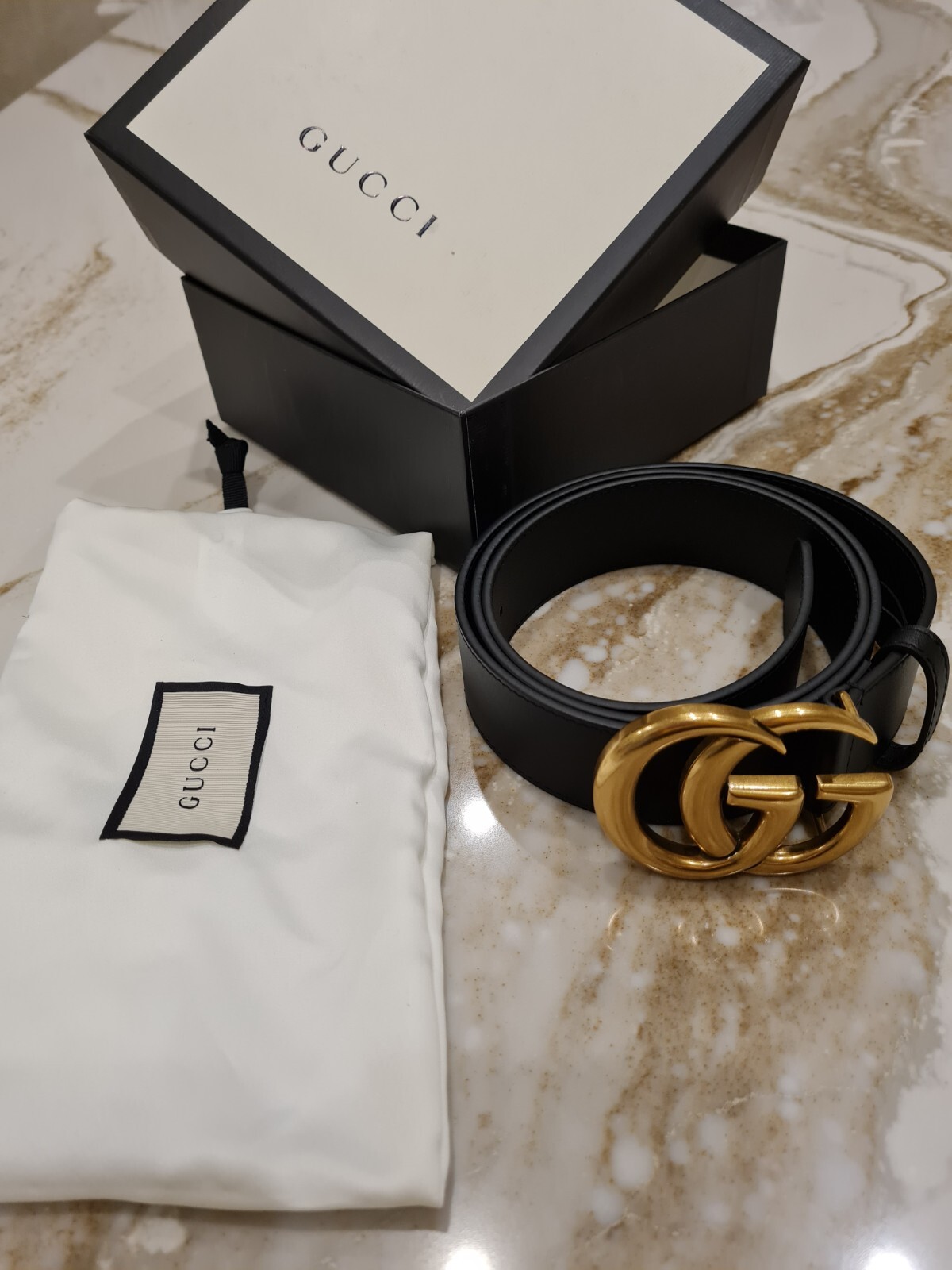 Gucci GG Marmont belt with brass buckle, black leather, 1.5 inch width. Slightly used in excellent conditions. It Comes with Dust Bag and original box, will ship right away. 100% AUTHENTIC OR YOU WILL GET FULL REFUND FREE SHIPPING IN U.S.