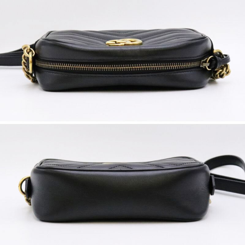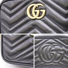 Gucci GG Marmont quilting mini bag shoulder 448065, black leather with strap. The size is Width 7.09 x Height 4.72 x Depth 2.36 inches, chain shoulder strap height: 23.62 inches / length: 47.24 inches. Accessories: None. Material: Quilting chevron leather (black). There are some minor scratches on the leather surface, but the overall condition is good. The inside of the bag is clean, but there is one ink mark on the bottom (see image). I promise fast shipping via FedEx or DHL as soon as possible! Import duties, taxes and charges are not included in the item price or shipping charges. These charges are the buyer’s responsibility. These charges are normally collected by the delivering freight (shipping) company or when you pick the item up - do not confuse them for additional shipping charges.