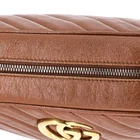 These are professional pictures of the actual item offered by Rebag. Condition: Very good. Exterior: edge wear, corner wear, minor creases | Handles/Straps: minor creases | Interior: perfume odor, minor discoloration | Hardware: minor scratches Accessories: No Accessories Measurements: Handle Drop None", Height 5.5", Width 10", Depth 3", Strap Drop 22.5-24" Designer: Gucci Model: GG Marmont Shoulder Bag Diagonal Quilted Leather Small Exterior Material: Leather Exterior Color: Brown Interior Material: Microfiber Interior Color: Neutral Hardware Color: Aged Gold Item Number: 353402/1