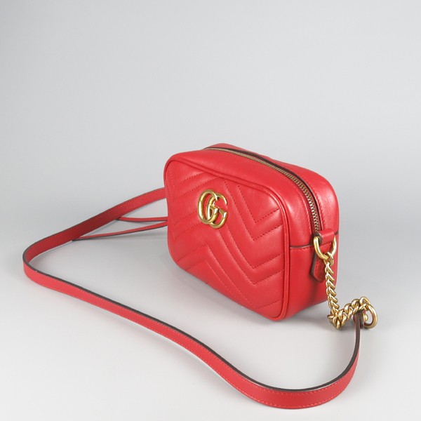 Size: 18 cm wide/ 12 cm/ width 6 cm/ strap height 60 cm Color: red Accessories: Gucci (Gucci) 448065 red leather gold GG Marmont Matelassé mini crossbody bag [Mokdong Hyundai Store]. The store price is 1; 680; 000 won. The material is leather. There is a regular pocket on the inside. GG Marmont mini soft structured chain shoulder bag Top zip closure with double G metal accents Chain shoulder strap with leather shoulder detail. Made of matelassé leather with a chevron design and GG motif on the back. 2018 Carryover Collection Manufacturer: Gucci Country of Manufacture: Italy Importer: Gucci Korea Black Matelassé Chevron Leather with GG Decorative Antique Gold Tone Metal Details Double G Inside Open Pocket Chain Shoulder Strap; 60 cm Drop Top Zip Lock Weight: Approx 0.55 kg Strap Length: 120 cm Mini Size: 18 cm x 12 cm x Width 6 cm Microfiber lining and suede finish **Due to the nature of second-hand luxury goods, there may be stains not visible in the image. **