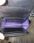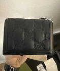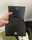 Includes dust bag, box, care cards, Gucci shopping bag. Makes for an amazing gift!! Black GG Matellase leather and fabric. Double G black Chain top handle with 2" drop Snap Magnetic Closure Inside - 2 Compartments, including credit card slots. Leather Shoulder Strap with 22" drop 5.1" W x 4.3" H x 2 " D Please see attached photos and feel free to reach out to me with any questions you may have.