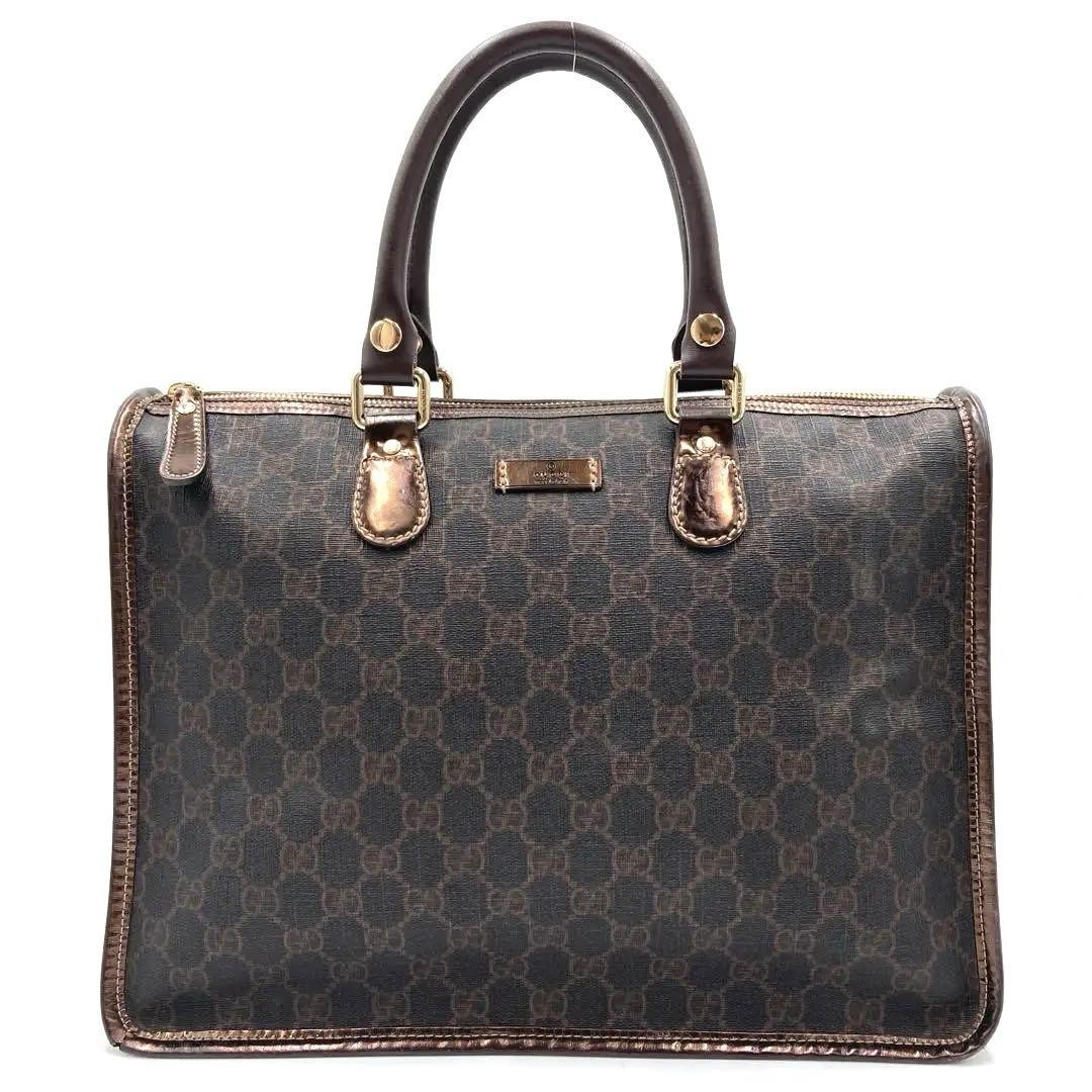 Gucci GG Mini Boston Bag PVC Brown 12x13x5.1in Used Key Features Gucci handbag with approximate dimensions: Width 12.2 inches, Height 9.1 inches, Depth 5.1 inches. - C:Exterior Material: Enamel and leather accents - C:Department: Women's Handbag - C:Exterior Color: Black with white accents - C:Style: Tote - C:Theme: Luxury Fashion - C:Character: Classic Designer - C:Accents: Gold-tone hardware - C:Features: Interior logo tag with some deterioration, handle replaced with aftermarket part - C:Finish: Glossy enamel with leather trim - C:Closure: Open top - C:Model: GG Tote - C:Country/Region of Manufacture: Italy - C:Vintage: No - C:Bag Width: 12.2 in - C:Bag Height: 9.1 in - C:Bag Depth: 5.1 in - C:Handle Style: Specifications Brand Gucci Country Japan Product Description Item Title Gucci Gg Mini Boston Bag Handbag Pvc Brown Payment Supports managed payments Please pay within 5 days after auction is finished. About Us We are located in Japan. It's our pleasure to make you happy by proposing our recommend item. If you have any questions or request about items, please feel free to ask us. International Buyers - Please Note: -Import duties, taxes, and charges are not included in the item price or shipping charges. These charges are the buyer's responsibility. -Please check with your country's customs office to determine what these additional costs will be prior to bidding/buying. -These charges are normally collected by the delivering freight (shipping) company or when you pick the item up - do not confuse them for additional shipping charges. -We do not mark merchandise values below value or mark items as - gifts - The US and International government regulations prohibit such behavior. Thank you for your understanding.