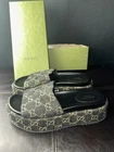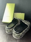 Authentic Gucci platform slide sandals in GG Supreme monogram canvas. Women’s Size 9 / EU 39 Classic Gucci monogram print Thick platform sole with rubber bottom Black footbed Includes original Gucci box Gently worn. Some wear on the soles (see photos), but upper and platform are in great shape. Clean, comfortable, and easy to style. A bold but neutral luxury staple