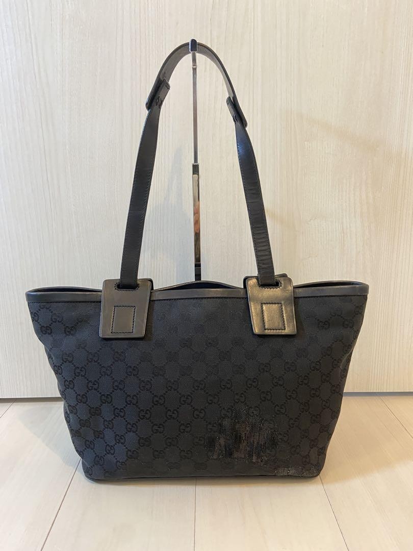 Gucci Tote Bag Gg Pattern Leather Canvas Wood Black Shoulder Key Features - **Product Description:** Gucci GG Canvas Leather Tote Bag in Black. Crafted from durable canvas with leather accents, featuring the iconic GG pattern. Perfect for everyday use or special occasions. - **Detailed Features:** Color: Black Material: Canvas and Leather Size: Height approx. 24cm, Width approx. 31cm, Depth approx. 13cm Handle/Strap: Handle height / Shoulder strap length approx. 28cm - **Condition:** Pre-owned with minor stains, slight wear, and some scratches. Overall in good condition with signs of use, but still suitable for long-term use. Please review photos for details. - **Item Specifics:** Brand: Gucci Type: Tote Bag Pattern: GG Pattern Material: Canvas, Leather Color: Black Size: 24cm x 31cm x 13cm Handle/Strap: 28cm Condition: Used, minor wear and stains Accessories: Specifications Brand Gucci Country Japan Product Description Description Thank you for your interest. This item is not new, but a used item that was given away. Please check the photos for the condition of the item. Please understand that the condition of the item is subjective and the standard of evaluation and feeling may vary from person to person, so please be aware that this is a used item before bidding. Please check the photos for the condition of the item, such as scratches and stains. To prevent problems, please feel free to contact us if you have any questions about the size or other details of the item. We will be happy to adjust the price. We will do our best to ship your order as soon as possible. We will do our best to ship as soon as possible, but there may be delays during the busy harvest season. Remarks All the products we sell are obtained and sold by pawn shops that are authorized brands, so all the products we handle have been authenticated to meet our strict standards for authenticity, so please buy with confidence. Payment Supports managed payments Please pay within 5 days after auction is finished. About Us We are located in Japan. It's our pleasure to make you happy by proposing our recommend item. If you have any questions or request about items, please feel free to ask us. International Buyers - Please Note: -Importduties, taxes, and charges are not included in the item price or shipping charges. These charges are the buyer's responsibility. -Please check with your country's customs office to determine what these additional costs will be prior to bidding/buying. -These charges are normally collected by the delivering freight (shipping) company or when you pick the item up - do not confuse them for additional shipping charges. -We do not mark merchandise values below value or mark items as - gifts - The US and International government regulations prohibit such behavior. Thank you for your understanding