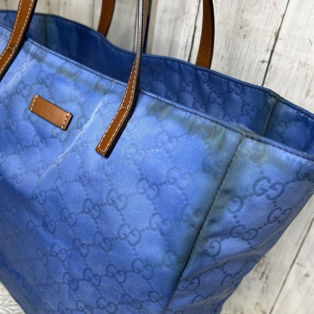Gucci GG Nylon Tote Bag Blue Pattern With Storage /Used++ Features **Product Description:** Discover this stylish pre-owned GUCCI handbag, perfect for fashion enthusiasts. This model features a beautiful blue exterior, complemented by a spacious interior. It comes with a dust bag and a guarantee card, showcasing its authenticity. **Detailed Features:** - **Brand:** GUCCI - **Model:** 282439 502752 - **Color:** Blue - **Size:** Height 29 cm, Width 31 cm, Depth 14 cm - **Condition:** Used with minor scratches and stains; please consider this before purchasing. Item Specifics: - C:Exterior Material: Leather - C:Style: Handbag - C:Exterior Color: Blue - C:Department: Women - C:Product Line: GUCCI - C:Size: Height 29 cm, Width 31 cm, Depth 14 cm - C:Condition: Used - C:Country/Region of Manufacture: Italy - C:Hardware Color Specifications Brand Gucci Country Japan Department Woman Theme Bag Item Title Gucci Gg Nylon Tote Bag Pattern Blue With Storage Payment Supports managed payments Please pay within 5 days after auction is finished. About Us We are located in Japan. It's our pleasure to make you happy by proposing our recommend item. If you have any questions or request about items, please feel free to ask us. International Buyers - Please Note: -Import duties, taxes, and charges are not included in the item price or shipping charges. These charges are the buyer's responsibility. -Please check with your country's customs office to determine what these additional costs will be prior to bidding/buying. -These charges are normally collected by the delivering freight (shipping) company or when you pick the item up - do not confuse them for additional shipping charges. -We do not mark merchandise values below value or mark items as - gifts - The US and International government regulations prohibit such behavior. Thank you for your understanding.