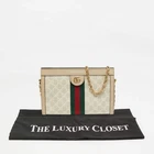 Our eBay Store About Us Contact Us Add to Favorite Sellers Gucci GG Ophidia Small Beige Supreme Canvas Shoulder Bag Gucci’s small Ophidia shoulder bag is rendered in beige Supreme canvas with classic GG patterning and smooth leather trims. The silhouette and chain offer comfortable wear, while the zipped interior secures essentials. A timeless piece within the Ophidia family, suited for everyday errands, travel, and casual city looks. Product Details Brand Gucci Includes The Luxury Closet Packaging Certified by The Luxury Closet This item has gone through a detailed authentication process overseen by our experts. We offer a lifetime guarantee of authenticity on all our items. How We Check The in-house team of experts at The Luxury Closet is highly trained to verify the authenticity and the condition of the luxury products. They ensure that only 100% authentic items are put on sale.The evaluation process is unique with its own mix of assessment criteria and differs according to the category. Each item is evaluated based on the following combination of hallmarks, hardware, stitching, symmetry, material, craftsmanship, stamping, codes, hologram stickers, and packaging. Our authenticators also check if the items have been modified or amended (e.g., aftermarket diamonds, replaced batteries, repaired bags, etc.) International Buyers Import duties, taxes and charges are not included in the item price. These charges are the buyers responsibility. Please check with your country’s customs office to determine what these additional cost will be prior to buying.