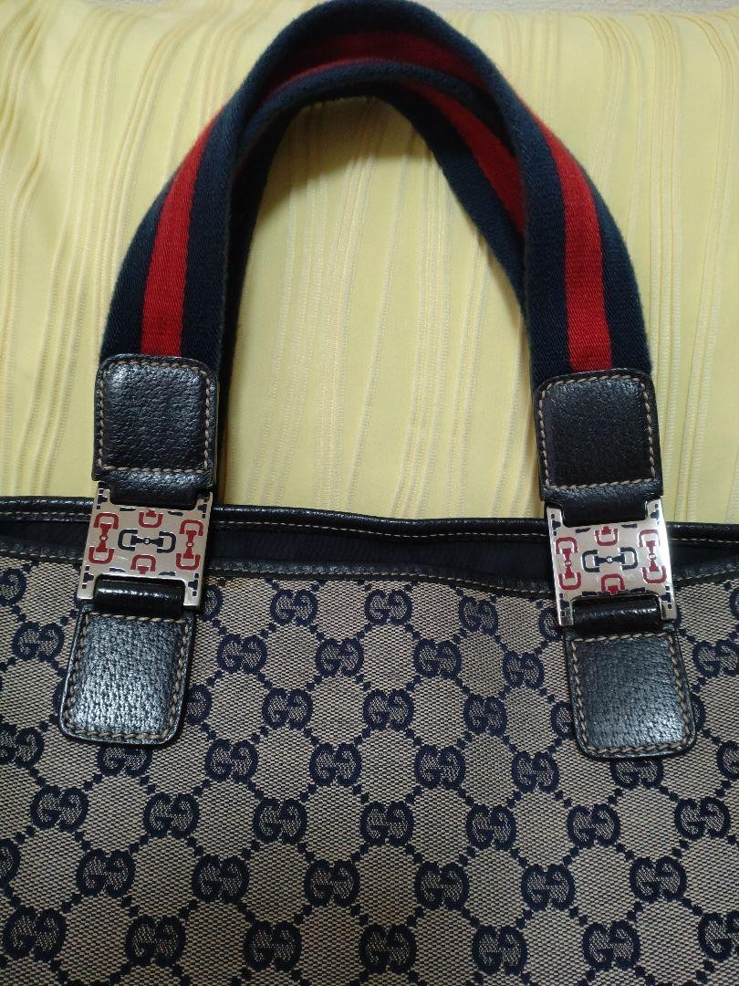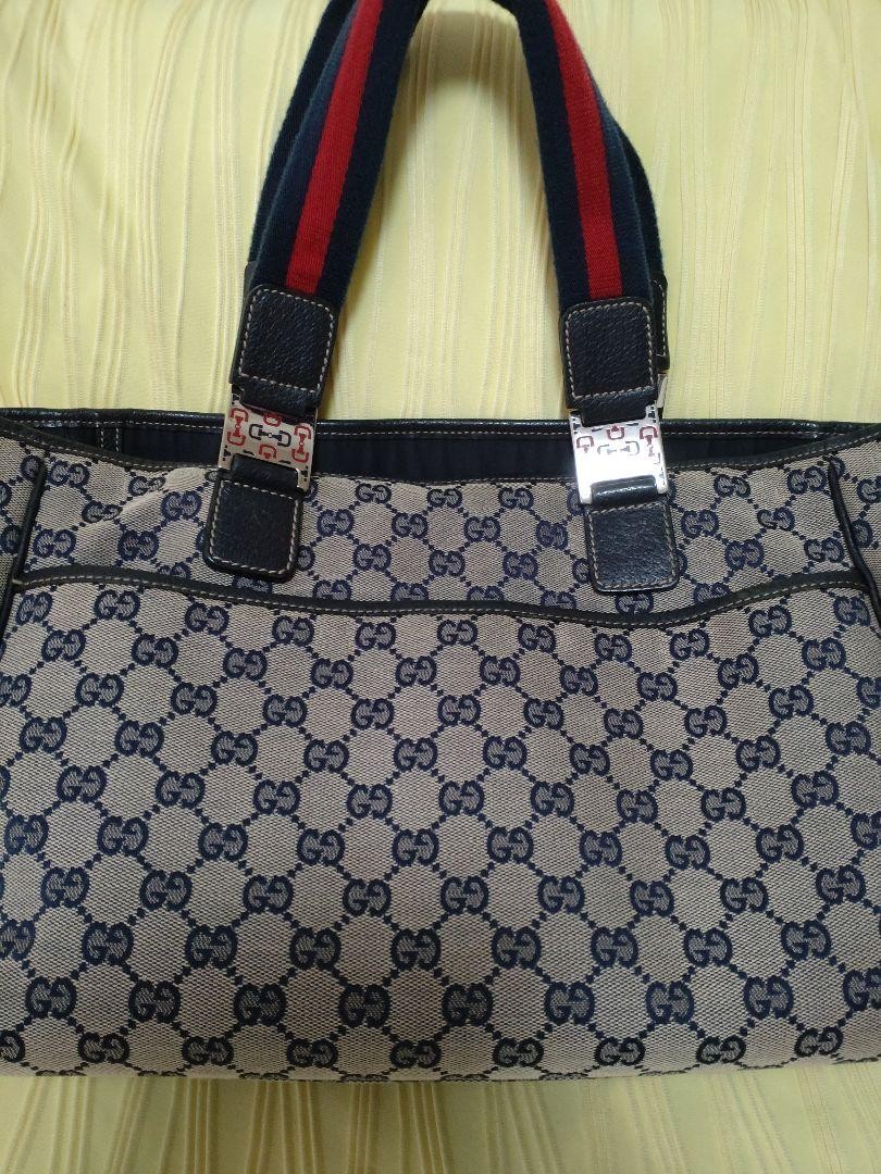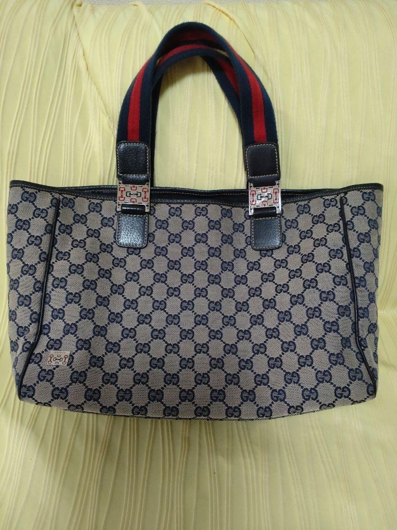 Gucci GG Pattern Handbag Beige/Navy/Red Canvas & Leather Used Key Features Gucci GG Pattern Handbag - Brand: Gucci - Product Type: Handbag - Model: GG Pattern - Exterior Material: Canvas and Leather - Exterior Color: Beige, Navy, Red - Pattern: GG Monogram - Handle Style: Double Handles - Hardware Material: Silver-tone metal - Closure: Not specified - Size: Bag Width: 13.4 in, Bag Height: 8.7 in, Bag Depth: 3.5 in - Handle/Strap Color: Silver - Handle/Strap Material: Leather - Handle Drop: Not specified - Features: Durable canvas with leather accents, silver hardware - Country/Region of Manufacture: Italy - Condition: Used, previously purchased from a friendly seller, lightly used with some signs of wear, weight may be noticeable - Additional: Serial number 145758, suitable for casual or stylish occasions Please note: Dimensions are approximate conversions from cm to inches. Specifications Brand Gucci Country Japan Product Description Item Title Large Gucci Gg Pattern Handbag Payment Supports managed payments Please pay within 5 days after auction is finished. About Us We are located in Japan. It's our pleasure to make you happy by proposing our recommend item. If you have any questions or request about items, please feel free to ask us. International Buyers - Please Note: -Import duties, taxes, and charges are not included in the item price or shipping charges. These charges are the buyer's responsibility. -Please check with your country's customs office to determine what these additional costs will be prior to bidding/buying. -These charges are normally collected by the delivering freight (shipping) company or when you pick the item up - do not confuse them for additional shipping charges. -We do not mark merchandise values below value or mark items as - gifts - The US and International government regulations prohibit such behavior. Thank you for your understanding.