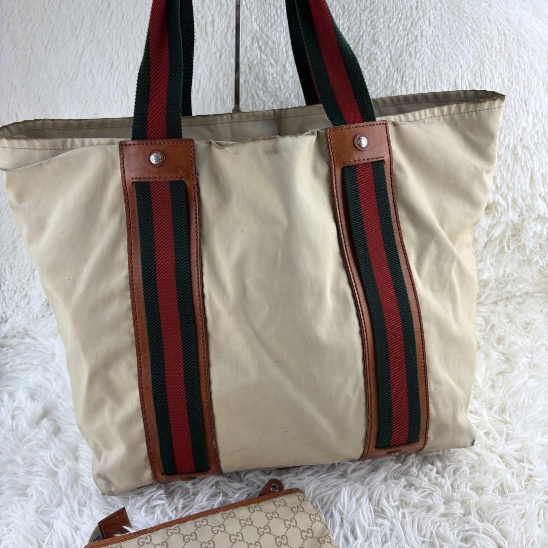 Gucci GG Pattern Sherry Line Oiled Leather Tote Bag Used Italy Key Features - Brand: Gucci - Product: GG Pattern Tote Bag - Model: 258611 491403 - Material: Oil leather, canvas, genuine leather - Color: Beige with brown accents - Size: approximately 10.4" (26.5cm) high, 15.4" (39cm) wide, 6.5" (16.5cm) deep, handle height 6.3" (16cm), strap length 17.7" (45cm) - Features: Vintage Gucci tote with GG pattern, zip closure, interior with 2 pockets, exterior with 1 pocket, comes with pouch - Condition: Exterior shows scratches and stains, interior is generally clean. Please refer to photos. - Notes: Purchased from major reuse shops nationwide, authenticated. No accessories are included unless noted in the title or product description. If you have questions, please ask before purchasing. Sizes may vary slightly. - Additional: Items Specifications Brand Gucci Country Japan Material Leather Style Tote Bag Exterior Material Leather Product Description Item Title Gucci Gg Pattern Sherry Line Tote Bag Oiled Leather Payment Supports managed payments Please pay within 5 days after auction is finished. About Us We are located in Japan. It's our pleasure to make you happy by proposing our recommend item. If you have any questions or request about items, please feel free to ask us. International Buyers - Please Note: -Import duties, taxes, and charges are not included in the item price or shipping charges. These charges are the buyer's responsibility. -Please check with your country's customs office to determine what these additional costs will be prior to bidding/buying. -These charges are normally collected by the delivering freight (shipping) company or when you pick the item up - do not confuse them for additional shipping charges. -We do not mark merchandise values below value or mark items as - gifts - The US and International government regulations prohibit such behavior. Thank you for your understanding.