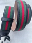 $ 170.02Gucci Tan Green Fabric Leather Web Interlocking G Buckle Belt 85CM
