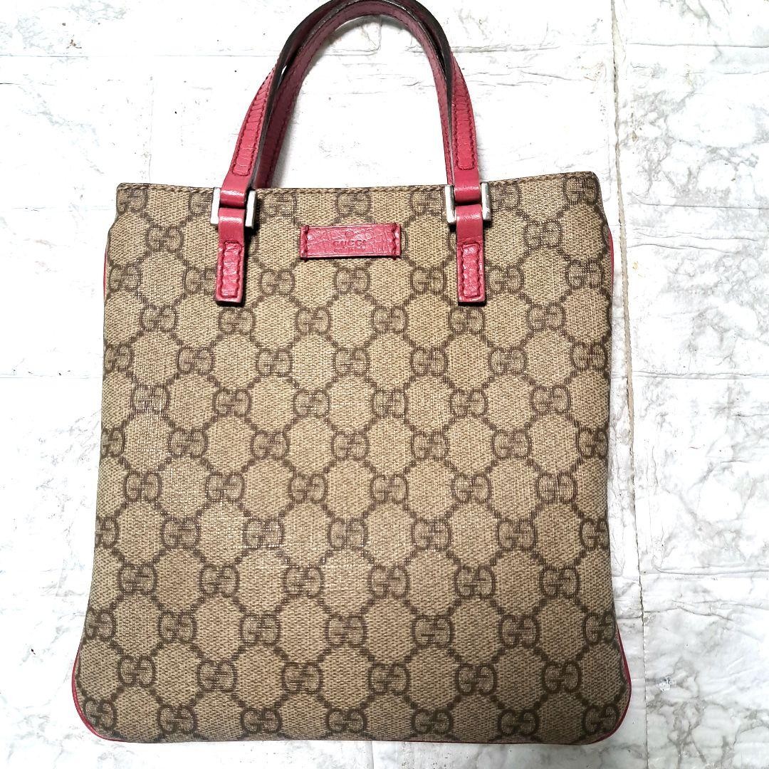 Gucci GG Supreme Pvc Leather Mini Tote Bag Brown & Pink Used Key Features - Brand: Gucci - Product Type: Mini Tote Bag - Model: GG Supreme Pink - Exterior Material: PVC and Leather Hybrid - Exterior Color: Brown and Pink - Pattern: GG Monogram - Size: approximately 8.1 inches (20.5 cm) wide, 8.7 inches (22 cm) high, 0.6 inches (1.5 cm) deep - Handle Length: approximately 10.2 inches (26 cm), Handle Drop: 4.1 inches (10.5 cm) - Closure: Snap Button - Features: Well-maintained, minimal signs of use, smooth zipper, secure snap closure, clean interior with no stains or dirt - Condition: Overall very good, minor handle use, slight corner wear, minimal color fading - Accessories: None included - Country/Region of Manufacture: Italy - Pattern: GG Monogram - Occasion: Casual, Everyday Use - Hardware Material: Specifications Brand Gucci Country Japan Product Description Item Title Gucci Supreme Pvc Leather Mini Tote Bag Payment Supports managed payments Please pay within 5 days after auction is finished. About Us We are located in Japan. It's our pleasure to make you happy by proposing our recommend item. If you have any questions or request about items, please feel free to ask us. International Buyers - Please Note: -Import duties, taxes, and charges are not included in the item price or shipping charges. These charges are the buyer's responsibility. -Please check with your country's customs office to determine what these additional costs will be prior to bidding/buying. -These charges are normally collected by the delivering freight (shipping) company or when you pick the item up - do not confuse them for additional shipping charges. -We do not mark merchandise values below value or mark items as - gifts - The US and International government regulations prohibit such behavior. Thank you for your understanding.