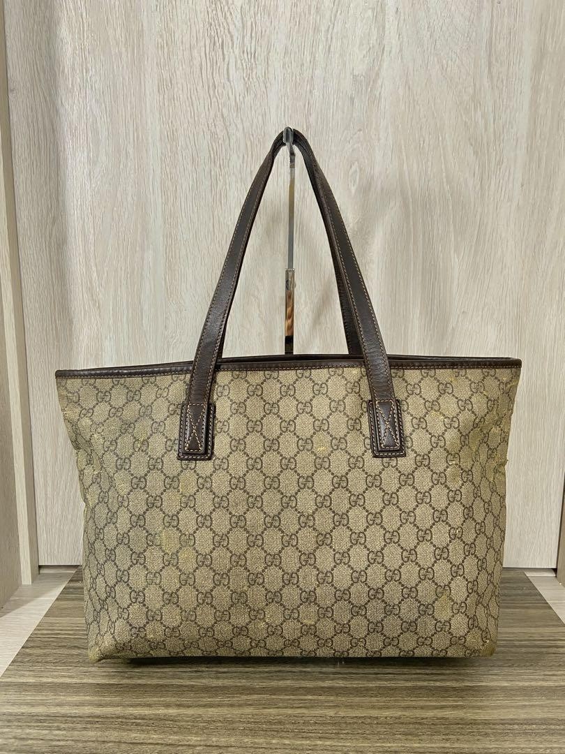 Gucci GG Supreme PVC Leather Tote Bag Beige 10.6in x 18.1in x 0.4in Used Key Features Gucci GG Supreme PVC Leather Tote Bag - C:Exterior Material: PVC, Leather - C:Department: Women - C:Exterior Color: Beige - C:Style: Tote Bag - C:Theme: Luxury - C:Character: Logo Pattern - C:Accents: Logo Plate - C:Features: Spacious, Durable - C:Finish: Matte - C:Closure: Open Top - C:Model: GG Supreme - C:Country/Region of Manufacture: Italy - C:Vintage: No - C:Bag Width: 18.1 in - C:Bag Height: 10.6 in - C:Bag Depth: 4.7 in - C:Handle/Strap Color: Beige - C:Handle/Strap Material: Leather - C:Handle Drop: 7.9 in - C:Hardware Color: Gold - C:Lining Color: Specifications Brand Gucci Country Japan Product Description Item Title Hoi Gucci Tote Bag Gg Supreme Pvc Leather Beige Payment Supports managed payments Please pay within 5 days after auction is finished. About Us We are located in Japan. It's our pleasure to make you happy by proposing our recommend item. If you have any questions or request about items, please feel free to ask us. International Buyers - Please Note: -Import duties, taxes, and charges are not included in the item price or shipping charges. These charges are the buyer's responsibility. -Please check with your country's customs office to determine what these additional costs will be prior to bidding/buying. -These charges are normally collected by the delivering freight (shipping) company or when you pick the item up - do not confuse them for additional shipping charges. -We do not mark merchandise values below value or mark items as - gifts - The US and International government regulations prohibit such behavior. Thank you for your understanding.