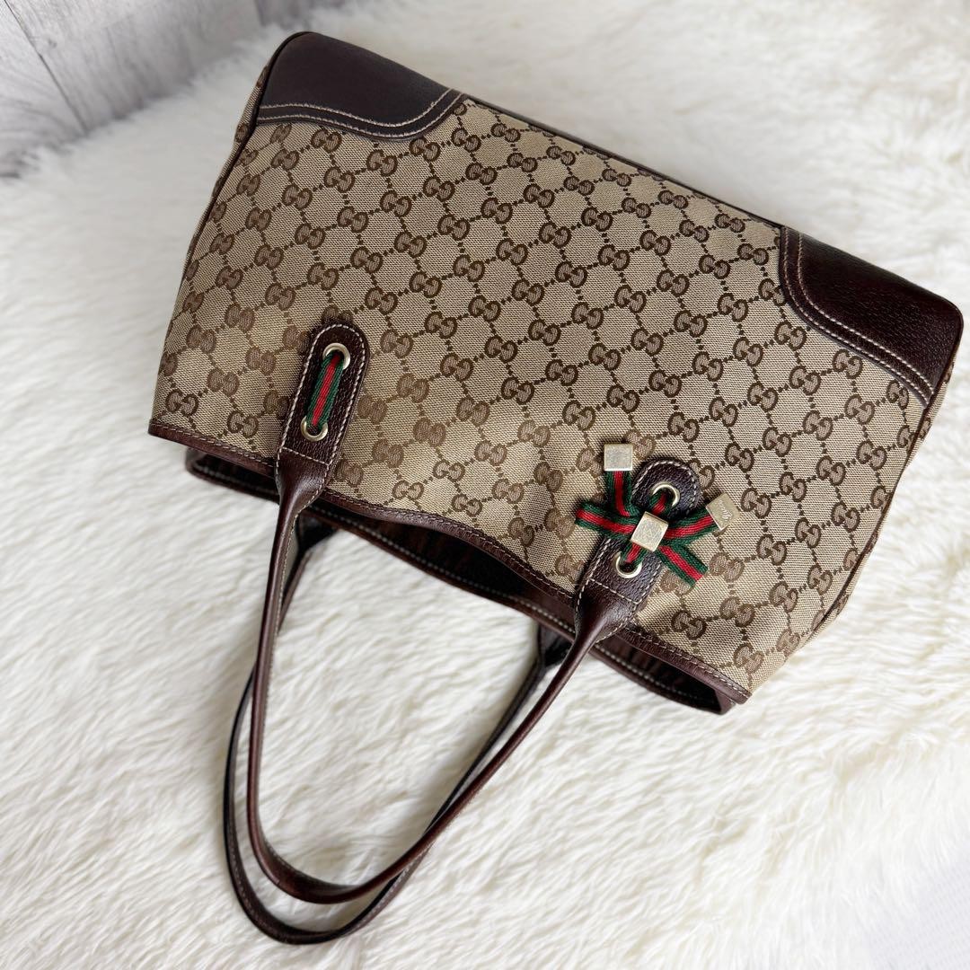 Gucci GG Supreme Sherry Line Tote Bag A4 Fits Used From Japan Key Features ✔ This Gucci GG Supreme Sherry Line Tote Bag is a stylish and practical accessory perfect for everyday use. Crafted from the iconic GG Supreme canvas with the distinctive GC pattern, this tote features the charming Sherry Line ribbon detail on the front, adding a cute and elegant touch. Its versatile size comfortably fits A4 documents, making it ideal for commuting, school, or casual outings. The bag is made of high-quality leather in a classic brown color , ensuring durability and timeless appeal. ✔ Designed for convenience, this tote can hold a long wallet, smartphone, water bottle, and small pouch. Its dimensions are approximately 23 cm in height, 38 cm in width, with a 10 cm depth, and a handle length of 49 cm. Overall, the bag is in excellent condition with minimal signs of wear, no noticeable scratches or stains, and only slight color variations or minor scuffs due to the nature of the material. It has been authenticated by a major reuse shop, ensuring genuine quality. ✔ Key Features: ✔ - Brand : Gucci ✔ - Model: GG Supreme Sherry Line Tote Bag ✔ - Pattern: GG Supreme Canvas with GC pattern ✔ - Color : Brown ✔ C: Brand : GUCCI ✔ C:Category: Tote Bag ✔ C:Model: GG Supreme Sherry Line Tote ✔ C:Pattern: GG Supreme Canvas with GC pattern ✔ C: Color : Brown ✔ C:Material: Leather ✔ C: Size : Height 23 cm, Width 38 cm, Depth 10 cm ✔ C:Handle Length: 49 cm ✔ C: Condition : Excellent, minimal signs of wear, no noticeable scratches or stains Specifications Brand GUCCI Country Italy Department Ladies Additional Description Item Title Gg Pattern Sherry Line Gucci Tote Bag Prince Payment Supports managed payments Please pay within 5 days after auction is finished. About Us We are located in Japan. It's our pleasure to make you happy by proposing our recommend item. If you have any questions or request about items, please feel free to ask us. International Buyers - Please Note: -Import duties, taxes, and charges are not included in the item price or shipping charges. These charges are the buyer's responsibility. -Please check with your country's customs office to determine what these additional costs will be prior to bidding/buying. -These charges are normally collected by the delivering freight (shipping) company or when you pick the item up - do not confuse them for additional shipping charges. -We do not mark merchandise values below value or mark items as - gifts - The US and International government regulations prohibit such behavior. Thank you for your understanding.