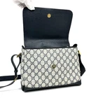 This Gucci GG Supreme shoulder bag is absolutely stunning! The gold hardware adds a luxurious touch, and the navy/gray jacquard is so versatile—perfect for both men and women. The vintage design feels timeless, and the spacious interior fits all my essentials. The adjustable strap makes it easy to wear crossbody or over the shoulder. The PVC and leather materials still look pristine, with no scratches or wear. Shipping was super fast, and the bag arrived beautifully packaged. A must-have for any Gucci lover!