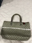 Elevate your accessory collection with the Gucci GG Supreme Signature Web Loop Tote in a versatile brown hue. Merging classic design with modern flair, this medium-sized tote features the iconic monogram pattern on a durable canvas and leather exterior. Its complementary beige lining, crafted from a mix of canvas and leather, ensures a luxurious feel with every use. Designed with practicality in mind, the tote boasts a spacious interior perfect for daily essentials. The brown canvas and leather handle/strap provide a comfortable grip and an aesthetically pleasing contrast. This piece is a true testament to Gucci's timeless elegance and Italian craftsmanship, making it a cherished addition to any collection.
