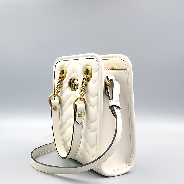 Size: 16 cm width/ 19 cm/ width 7 m/ handle height 11 cm/ strap height ~45 cm Color: ivory accessories: dust/ case Gucci (Gucci) 696123 GG gold ivory leather matelassé mini marmont shoulder bag [Busan Centum Head Office]. The material is leather. There is 1 small multi-use storage pocket. The strap height is adjustable. Store price: 2; 610; 000 won. [Note when purchasing] There are slight round stains and pink spots on the front. Other than that, it is an overall clean product. Reminiscent of trends from the 1990s, the Gucci Love Parade showcased the house's cignature elements in witty miniature versions. GG Marmont handbag in a soft-structured rectangular shape. Made of grey matelassé leather; finished with a small double G metal decoration A fashion accessory that can be styled in a variety of ways with double handles and a detachable leather strap. Love Parade Collection Manufacturer: Gucci Country of Manufacture: Italy Importer: Gucci Korea Grey Matelassé Leather Silver Tone Metal Microfibre Lining and Suede Finish Double G Double Handle; 11cm Drop Shoulder Drop: 45 cm 16 cm wide x 19 cm long x 7 cm wide