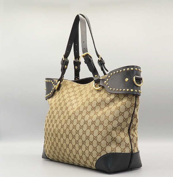 Size: 37 cm width/ 32 cm/ width 16 cm/ handle height 22 cm/ handle height: see picture Accessories: Gucci (Gucci) 296871 GG logo canvas jacquard studs black leather-trimmed shopper shoulder bag [Gangnam Main Store]. The material is jacquard/leather. There is a zipper pocket/2 small multi-purpose storage pockets on the inside. **Due to the nature of second-hand luxury goods, there may be stains not visible in the image. **