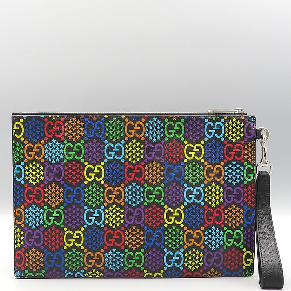 Size: 30.5 CM width/ 21 cm long Color: See image Accessories: case/dust/booklet Gucci (Gucci) 601087 GG psychedelic clutch bag + wrist strap [Daejeon head office]. The material is leather. There is a card slot/small multi-purpose storage pocket on the inside.