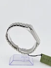 Gucci G-Timeless Men's Black Dial Stainless Steel Watch - YA138401 ($990 MSRP) New with Original Box and Tags! This watch is a Shelf Pull from one of the Major Department Stores. May find few micro scratches on the watch case/band, visible under a direct and strong light. The Gucci G-Timeless Men's Black Dial Stainless Steel Watch - YA138401 is a sleek and stylish timepiece that effortlessly combines sophistication with durability. The watch features a robust stainless steel case and bracelet, offering a modern, polished look. The fixed stainless steel bezel adds to the overall clean and streamlined design, while the rectangular case shape and 9mm case thickness create a distinctive, bold presence on the wrist. The striking black dial of the watch is complemented by luminous silver-tone hands and index hour markers, ensuring clear readability, even in low light. Minute markers around the outer rim provide extra precision, while a date display at the 6 o'clock position adds practicality. Powered by a reliable quartz movement, this watch guarantees accuracy and longevity, while the scratch-resistant mineral crystal keeps it protected from everyday wear and tear. Designed for both style and functionality, this Gucci G-Timeless watch boasts a water resistance of up to 50 meters (165 feet), making it suitable for light splashes or brief immersion in water. The push/pull crown and deployment clasp enhance ease of use and comfort, while the 23mm bracelet width ensures a secure fit. With its combination of elegant design and everyday practicality, this timepiece is the perfect accessory for the modern man who appreciates luxury and precision. Features Stainless steel case with a stainless steel bracelet. Fixed stainless steel bezel. Black dial with luminous silver-tone hands and index hour markers. Minute markers around the outer rim. Dial Type: Analog. Date display at the 6 o'clock position. Quartz movement. Scratch resistant mineral crystal. Push / pull crown. Solid case back. Case dimensions: 33 mm x 32mm. Case thickness: 9 mm. Bracelet width: 23 mm. Rectangle case shape. Deployment clasp. Water resistant at 50 meters / 165 feet. Functions: date, hour, minute, second. Fast and Free Shipping You're already purchasing the item. Why pay additional for shipping, especially slow shipping? We get your order shipped out within 1-business day and delivered to your doorstep as quickly as possible. Competitive Pricing With our dynamic pricing model, our prices are always competitive. Our prices are some of the lowest that you will find on the internet. Rest assured that you're getting a good deal when purchasing with us. 30-day Money Back Guarantee We are committed to making sure that you leave this transaction satisfied. If you're unhappy with the product for any reason, you may return it back for your money-back or a replacement within 30 days. No questions asked!