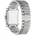 Gucci G-Timeless Men's Black Dial Stainless Steel Watch - YA138401 ($990 MSRP) With Original Box! This watch is a Shelf Pull from one of the Major Department Stores. Watch has micro scratches on the watch case/band, visible under direct light. The Gucci G-Timeless Men's Black Dial Stainless Steel Watch - YA138401 is a sleek and stylish timepiece that effortlessly combines sophistication with durability. The watch features a robust stainless steel case and bracelet, offering a modern, polished look. The fixed stainless steel bezel adds to the overall clean and streamlined design, while the rectangular case shape and 9mm case thickness create a distinctive, bold presence on the wrist. The striking black dial of the watch is complemented by luminous silver-tone hands and index hour markers, ensuring clear readability, even in low light. Minute markers around the outer rim provide extra precision, while a date display at the 6 o'clock position adds practicality. Powered by a reliable quartz movement, this watch guarantees accuracy and longevity, while the scratch-resistant mineral crystal keeps it protected from everyday wear and tear. Designed for both style and functionality, this Gucci G-Timeless watch boasts a water resistance of up to 50 meters (165 feet), making it suitable for light splashes or brief immersion in water. The push/pull crown and deployment clasp enhance ease of use and comfort, while the 23mm bracelet width ensures a secure fit. With its combination of elegant design and everyday practicality, this timepiece is the perfect accessory for the modern man who appreciates luxury and precision. Features Stainless steel case with a stainless steel bracelet. Fixed stainless steel bezel. Black dial with luminous silver-tone hands and index hour markers. Minute markers around the outer rim. Dial Type: Analog. Date display at the 6 o'clock position. Quartz movement. Scratch resistant mineral crystal. Push / pull crown. Solid case back. Case dimensions: 33 mm x 32mm. Case thickness: 9 mm. Bracelet width: 23 mm. Rectangle case shape. Deployment clasp. Water resistant at 50 meters / 165 feet. Functions: date, hour, minute, second. Fast and Free Shipping You're already purchasing the item. Why pay additional for shipping, especially slow shipping? We get your order shipped out within 1-business day and delivered to your doorstep as quickly as possible. Competitive Pricing With our dynamic pricing model, our prices are always competitive. Our prices are some of the lowest that you will find on the internet. Rest assured that you're getting a good deal when purchasing with us. 30-day Money Back Guarantee We are committed to making sure that you leave this transaction satisfied. If you're unhappy with the product for any reason, you may return it back for your money-back or a replacement within 30 days. No questions asked!