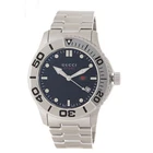 Gucci G-Timeless Men's Navy Stainless Steel Watch - YA126278 ($1150 MSRP) New with Gift Box! This watch is a Shelf Pull from one of the Major Department Stores. May find few micro scratches on the watch case/band, visible under a direct and strong light. The Gucci G-Timeless Men's Navy Stainless Steel Watch (YA126278) combines luxury and precision in one timeless design. Featuring a striking blue dial that enhances its sophisticated appeal, this watch is a perfect accessory for any occasion. The round stainless steel case with a 45mm diameter offers a bold yet elegant look, making it suitable for both casual and formal wear. The subtle combination of navy and silver creates a refined aesthetic that complements modern tastes while remaining classic enough to stand the test of time. Equipped with reliable quartz movement, this Gucci timepiece ensures accurate timekeeping for the modern man on the go. The stainless steel band in silver provides both comfort and durability, offering a secure fit for daily wear. The sleek and polished design is as functional as it is fashionable, making it a perfect statement piece for any wardrobe. Whether you're attending a business meeting or a night out, the G-Timeless watch adds a touch of elegance and practicality to your ensemble. Designed with water resistance up to 30 meters, the Gucci G-Timeless Men's Navy Stainless Steel Watch offers peace of mind in light water exposure, such as rain or splashes. This thoughtful feature ensures that the watch maintains its quality and functionality, even with everyday wear. The combination of style, craftsmanship, and practicality makes this timepiece a must-have for any watch enthusiast or fashion-conscious individual. With its enduring design and impeccable performance, the Gucci G-Timeless Watch is a luxurious investment in both fashion and function. Features Brand: Gucci Dial Color: Navy Case Diameter : 45 mm Shape: Round Case Material: Stainless Steel Band Color: Silver Movement: Quartz Water Resistant : 30 m Fast and Free Shipping You're already purchasing the item. Why pay additional for shipping, especially slow shipping? We get your order shipped out within 1-business day and delivered to your doorstep as quickly as possible. Competitive Pricing With our dynamic pricing model, our prices are always competitive. Our prices are some of the lowest that you will find on the internet. Rest assured that you're getting a good deal when purchasing with us. 30-day Money Back Guarantee We are committed to making sure that you leave this transaction satisfied. If you're unhappy with the product for any reason, you may return it back for your money-back or a replacement within 30 days. No questions asked!