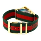 Gucci G-Timeless Men's Tiger Dial Two Tone Nylon Watch - YA126491 ($920 MSRP) New with Original Box and Tags! This watch is a Shelf Pull from one of the Major Department Stores. May find few micro scratches on the watch case/band, visible under a direct and strong light. Introducing the Gucci Men's G-Timeless Red and Green Dial Quartz Watch (Model: YA126491), a striking timepiece that embodies the essence of the iconic Gucci brand. With its distinctive red-green dial, this watch is a celebration of the brand's heritage, showcasing its signature colors in a bold and contemporary design. Crafted with precision, the stainless steel case features a classic round shape, measuring 38 mm in diameter. This versatile size ensures a comfortable fit on the wrist while making a statement with its eye-catching dial. Powered by quartz movement, this watch offers reliable and precise timekeeping for the modern gentleman. The red-green dial is complemented by a matching red-green band, creating a cohesive and stylish aesthetic. Whether worn as a fashion statement or a symbol of sophistication, this watch is sure to turn heads with its unique color scheme. With water resistance up to 50 meters, it is suitable for everyday wear and minor water exposure. Features Brand: Gucci Dial Color: Red-Green Case Diameter (mm): 38 Shape: Round Case Material: Stainless Steel Band Color: Red-Green Movement: Quartz Water Resistant (meters): 50 Fast and Free Shipping You're already purchasing the item. Why pay additional for shipping, especially slow shipping? We get your order shipped out within 1-business day and delivered to your doorstep as quickly as possible. Competitive Pricing With our dynamic pricing model, our prices are always competitive. Our prices are some of the lowest that you will find on the internet. Rest assured that you're getting a good deal when purchasing with us. 30-day Money Back Guarantee We are committed to making sure that you leave this transaction satisfied. If you're unhappy with the product for any reason, you may return it back for your money-back or a replacement within 30 days. No questions asked!