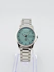 Gucci G-Timeless Women's Turquoise Blue Dial Watch - YA1265051 ($1250 MSRP) With Original Box! This watch is a Shelf Pull from one of the Major Department Stores. Watch has micro scratches on the watch case/band, visible under direct light. Introducing the Gucci G-Timeless Women's Turquoise Blue Dial Watch (Model: YA1265051), a stunning timepiece that epitomizes elegance and sophistication. Crafted with meticulous attention to detail, this watch seamlessly blends timeless design with modern sensibility, making it the perfect accessory for any occasion. The watch features a vibrant turquoise blue dial that instantly captivates the eye, creating a striking focal point against the stainless steel case. With a diameter of 27 mm, the case strikes the perfect balance between elegance and presence on the wrist, while the durable stainless steel construction ensures longevity and durability. Paired with a matching stainless steel bracelet, this watch exudes refinement and luxury, elevating any ensemble with its sleek and polished aesthetic. The quartz movement ensures precise timekeeping, while water resistance up to 50 meters (5 ATM) adds versatility and peace of mind for everyday wear. Whether worn for a casual outing or a formal event, the Gucci G-Timeless Women's Turquoise Blue Dial Watch is sure to make a statement with its bold color and timeless design. With its combination of style, functionality, and durability, this watch is the perfect expression of individuality and sophistication for the modern woman. Features Brand: Gucci Model: G-Timeless Ref. number: YA1265051 Dial color: Blue Case material: Stainless steel Case size: 27 mm Bracelet material: Stainless steel Movement: Quartz Water resistance: 50 meters (5 ATM) Fast and Free Shipping You're already purchasing the item. Why pay additional for shipping, especially slow shipping? We get your order shipped out within 1-business day and delivered to your doorstep as quickly as possible. Competitive Pricing With our dynamic pricing model, our prices are always competitive. Our prices are some of the lowest that you will find on the internet. Rest assured that you're getting a good deal when purchasing with us. 30-day Money Back Guarantee We are committed to making sure that you leave this transaction satisfied. If you're unhappy with the product for any reason, you may return it back for your money-back or a replacement within 30 days. No questions asked!
