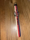 The New Gucci G-Timeless Wolf Motif Dial Multicolor Nylon Unisex Watch YA1264059 is a stylish and fashionable timepiece featuring a red dial with a wolf motif, housed in a stainless steel case with a smooth bezel. The watch is water resistant up to 100m and comes with a 2-year warranty from WatchMaxx. This unisex watch has a 38mm case size, battery-operated quartz movement, and is secured with a tang closure. It also includes a nylon band in multiple colors and comes with its original box and packaging, making it a great addition to any watch collection.