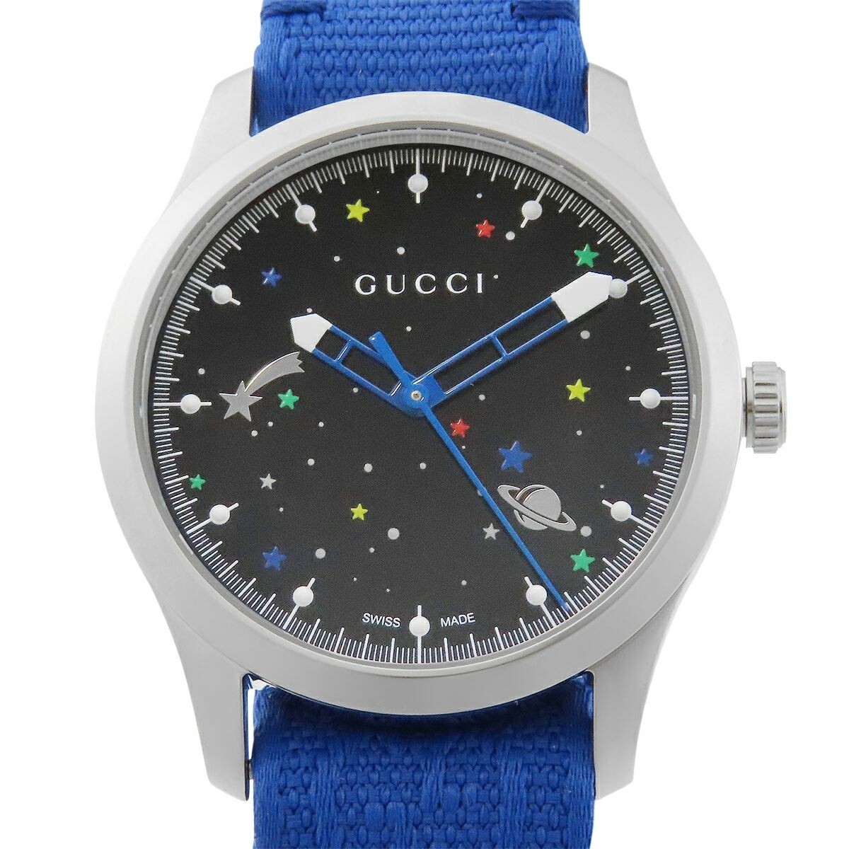 Description Brand: Gucci Model: G Timeless Model number: YA1264183 Movement: Quartz Case size: Approx. 38mm Body thickness: Approx. 8.5mm Weight: Approx. 53.5g Material: Stainless steel, nylon, sapphire glass Color: Dial: Black (Black) Belt material/color: Nylon/Blue Wrist size: Fits up to 20.5cm Accessories: Guarantee (international warranty), manufacturer's original box *Specifications of accessories may vary depending on the time of arrival. *Protective stickers are removed during inspection. Shipping Our warehouse staff will ship it within 10 working days. Your parcel will be delivered by FedEx/DHL/Japan Post with tracking number from Japan. It usually takes from several days to 1 week. About Us I am selling from Japan. We sell our products with sincerity and with the motto of putting the customer first. Thank you. International Buyers - Please Note: - Import duties, taxes and charges are not included in the item price or shipping charges. These charges are the buyers responsibility. - Please check with your countrys customs office to determine what these additional costs will be prior to bidding/buying. - These charges are normally collected by the delivering freight (shipping) company or when you pick the item up - do not confuse them for additional shipping charges. - We do not mark merchandise values below value or mark items as "gifts" - US and International government regulations prohibit such behavior.