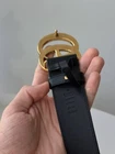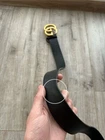 Elevate your wardrobe with the Gucci Gold Double GG Logo Metal Belt, a seamless blend of luxury and style. Tailored for the discerning gentleman, this belt is crafted in Italy and bears the hallmark of quality with its striking black check pattern and the iconic, bold GG logo accents. The belt is a regular size 32, ensuring a comfortable fit for everyday wear. Its versatile design complements a range of themes, from classic and sports to academic and professional, making it an essential accessory for any well-curated wardrobe. With its robust construction and timeless appeal, this piece is not just a belt, but a statement of sophistication.