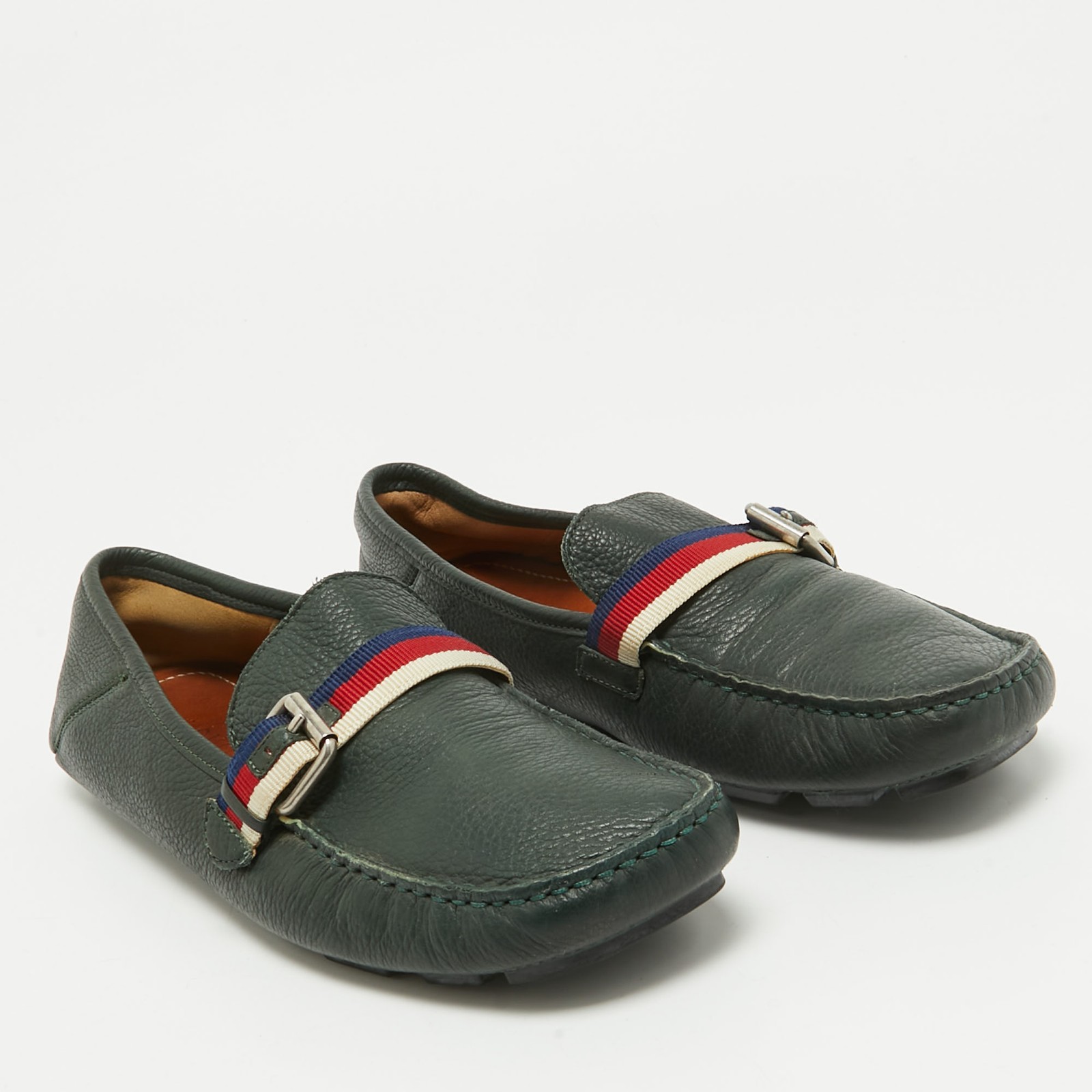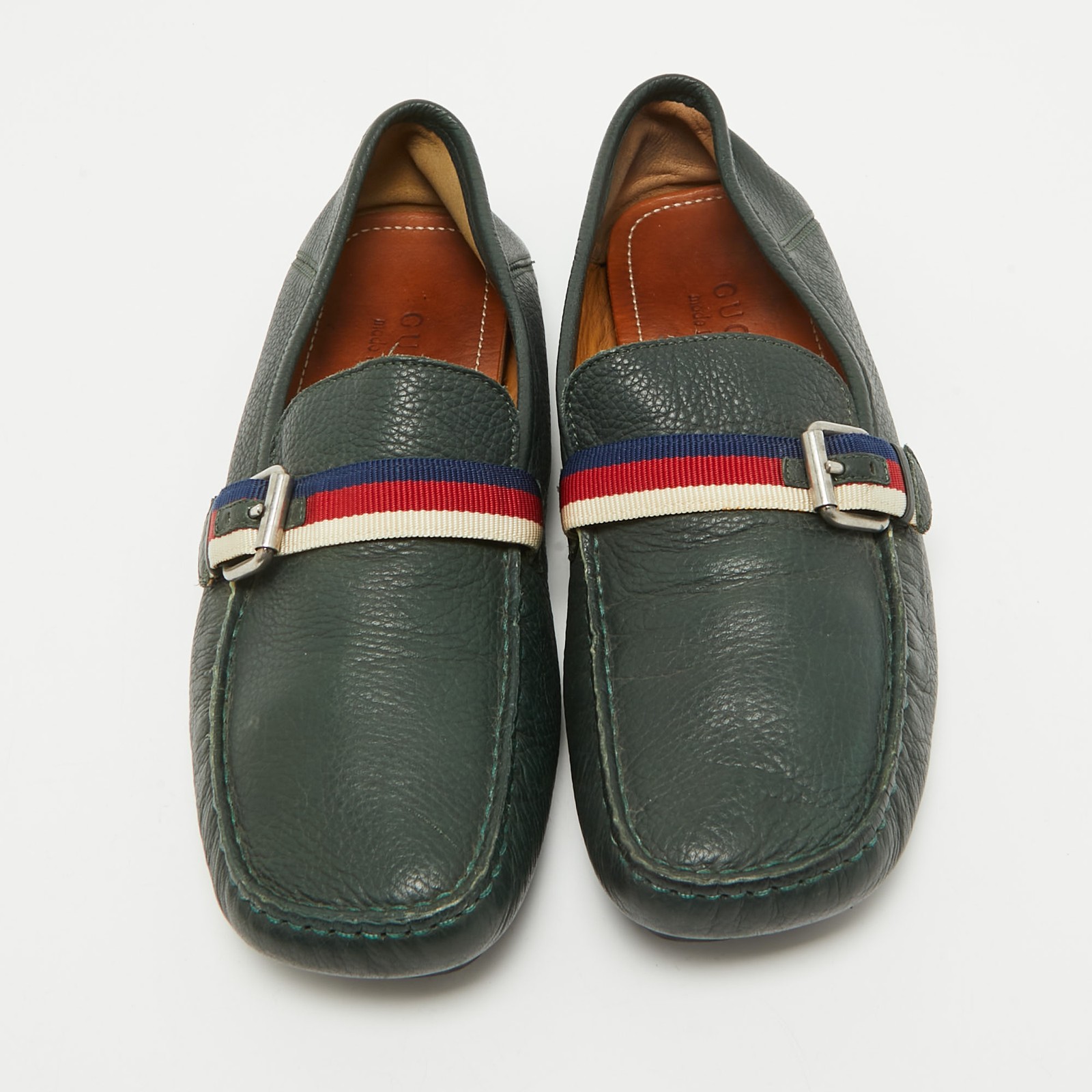The classic driving loafer gets a vibrant update with Gucci’s green leather version, detailed with the signature Web stripe and bee motif. A staple for relaxed refinement.Certified by The Luxury Closet - This item has gone through a detailed authentication process overseen by our experts. We offer a lifetime guarantee of authenticity on all our items. Import duties, taxes and charges are not included in the item price. These charges are the buyers responsibility. Please check with your country’s customs office to determine what these additional cost will be prior to buying. Our eBay Store About Us Contact Us Add to Favorite Sellers Gucci Green Leather Web Driver Loafers Size 40 $240.9 The classic driving loafer gets a vibrant update with Gucci’s green leather version, detailed with the signature Web stripe and bee motif. A staple for relaxed refinement. Product Details Brand Color Green Dimensions Material Leather Size 40 Outsole Width Outsole Length Heel Height Includes Certified by The Luxury Closet This item has gone through a detailed authentication process overseen by our experts. We offer a lifetime guarantee of authenticity on all our items. How We Check The in-house team of experts at The Luxury Closet is highly trained to verify the authenticity and the condition of the luxury products. They ensure that only 100% authentic items are put on sale.The evaluation process is unique with its own mix of assessment criteria and differs according to the category. Each item is evaluated based on the following combination of hallmarks, hardware, stitching, symmetry, material, craftsmanship, stamping, codes, hologram stickers, and packaging. Our authenticators also check if the items have been modified or amended (e.g., aftermarket diamonds, replaced batteries, repaired bags, etc.) International Buyers Import duties, taxes and charges are not included in the item price. These charges are the buyers responsibility. Please check with your country’s customs office to determine what these additional cost will be prior to buying.